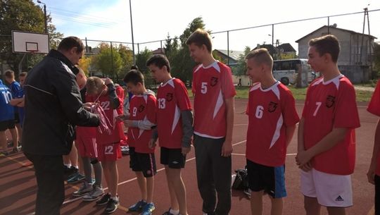 Pierwszy mecz, drużyna z Gimnazjum nr 3, zagrała z zawodnikami z Ujazdu. Mimo niesprzyjających warunków atmosferycznych chłopcy z Tomaszowa wygrali 25:6.