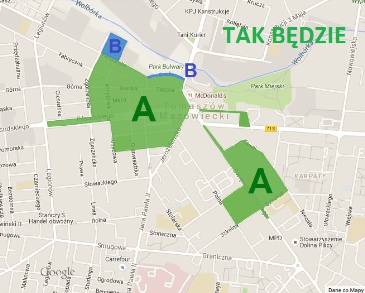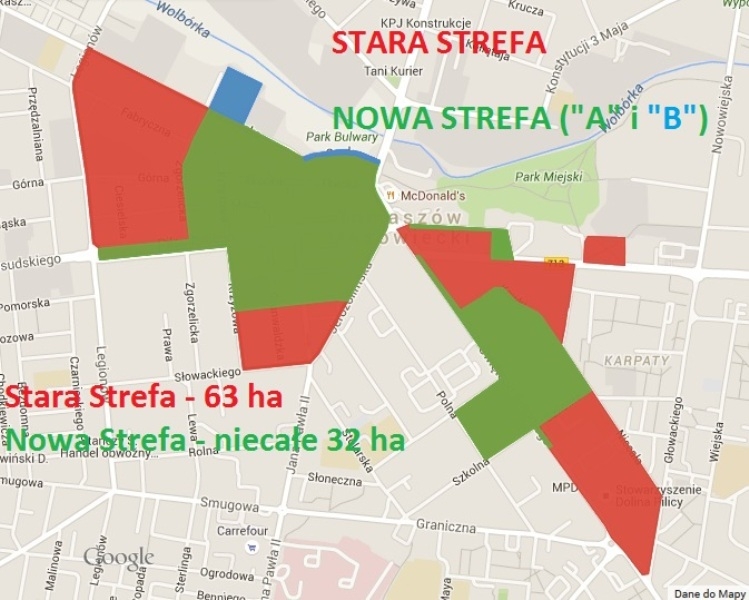 Po wprowadzeniu zmian przez Radę Miejską, Strefa Płatnego Parkowania nie będzie obowiązywała więc na następujących ulicach: Bohaterów 14-tej Brygady, Browarna, św. Antoniego – na odcinku od numeru 44 do Ronda Tomaszowskich Olimpijczyków, Zgorzelicka, Farbiarska – na odcinku od ulicy Zgorzelickiej do ulicy Legionów, Fabryczna – na odcinku od ulicy Zgorzelickiej do ulicy Legionów, Górna – na odcinku od ulicy Zgorzelickiej do ulicy Legionów, Murarska – na odcinku od ulicy Zgorzelickiej do ul. Legionów, Ciesielska, Krzyżowa – na odcinku od ulicy Piekarskiej do ulicy Słowackiego , Grunwaldzka – na odcinku od ulicy Piekarskiej do ulicy Słowackiego, Mała, Jerozolimska – na odcinku od ulicy Piekarskiej do ulicy Słowackiego, Berka Joselewicza – na odcinku od ulicy Piekarskiej do ulicy Słowackiego.