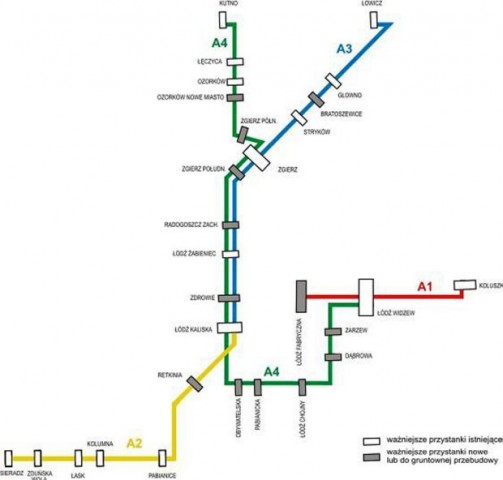 Kolej taka dociera między innymi do Łowicza, Sieradza, Łasku, Zduńskiej Woli i Zgierza. Do Tomaszowa oczywiście nie dojeżdża, bo jej linia kończy swój bieg w niedalekich Koluszkach.