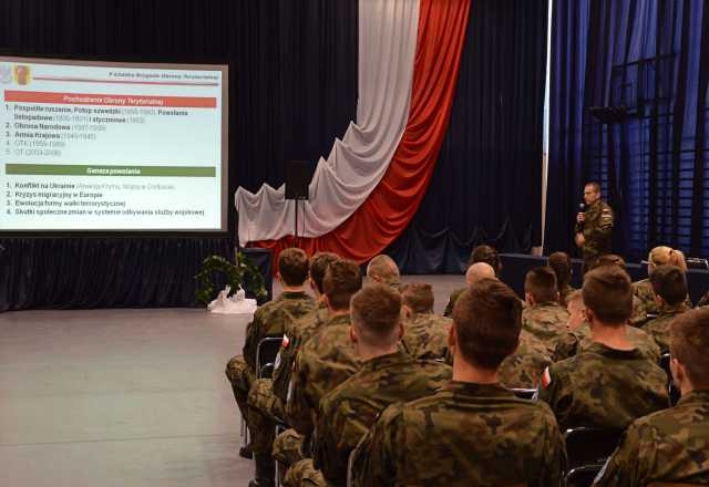Z kadetami klas wojskowych popularnego w naszym mieście "Mechanika" spotkał się szef sztabu 9. Łódzkiej Brygady Obrony Terytorialnej pułkownik Marcin Siudziński. Nasz gość przedstawił kadetom tą nową formacji polskich Sił Zbrojnych, jej zadania i specyfikę działania, polegającą na obronie i wsparciu lokalnego społeczeństwa w czasie konfliktu zbrojnego oraz klęsk żywiołowych lub katastrof. Omówił szczegółowo zasady rekrutacji do Wojsk Obrony Terytorialnej, oraz wymagania jakim sprostać muszą kandydaci do tego rodzaju służby.