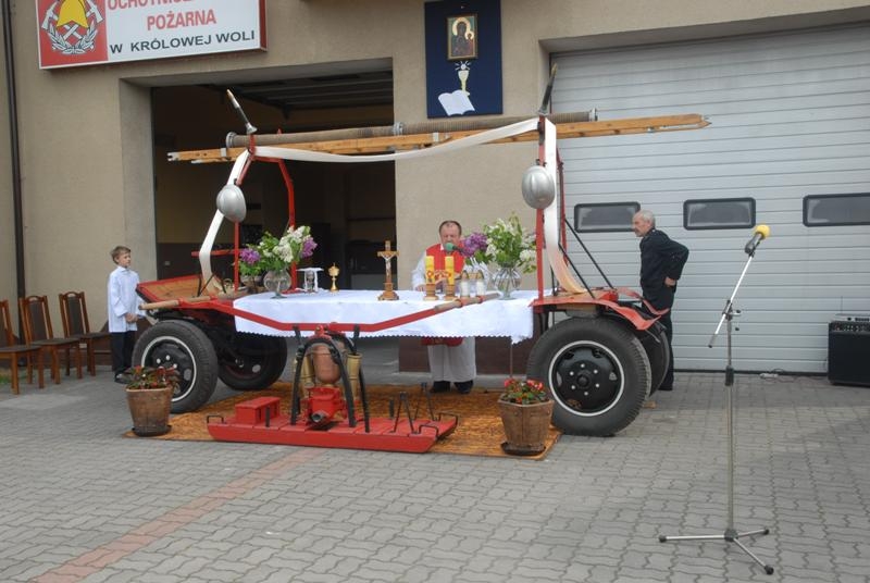Uroczystą Mszę Św. sprawował kapelan strażaków ksiądz Marek Polewczyk, proboszcz parafii Brzustów. W trakcie uroczystości wręczono Medale za zasługi dla pożarnictwa i odznakę Wzorowy Strażak. Niewątpliwym jest to, że druh Tadeusz Cisowski Wiceprezes Zarządu Oddziału Wojewódzkiego, zarazem Prezes Zarządu Oddziału Powiatowego miał swój bardzo duży udział w pozyskaniu nowego samochodu dla OSP Królowa Wola.