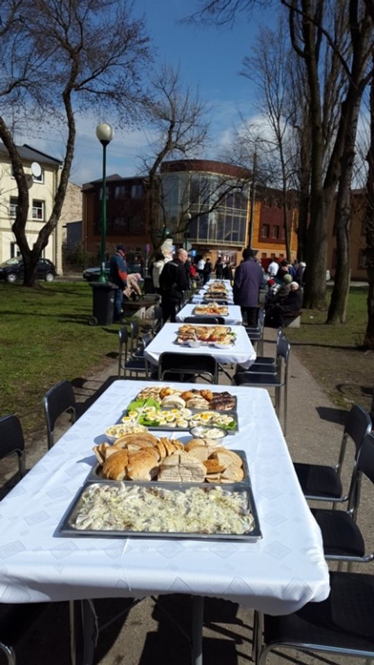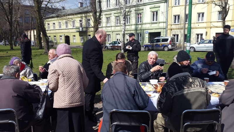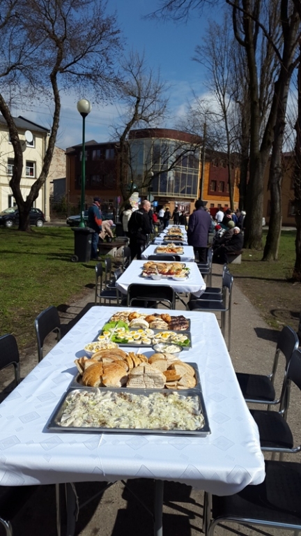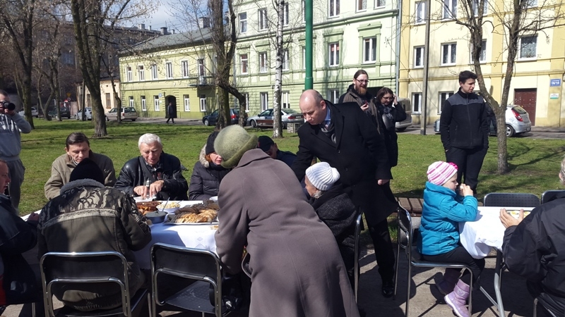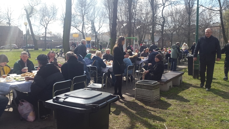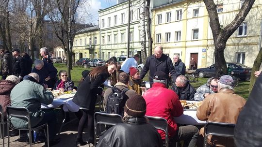 Po raz czwarty właściciele firmy "Deko Smaku" zorganizowali świąteczny poczęstunek dla osób potrzebujących. W sobotnie przedpołudnie zaprosili na śniadanie wielkanocne do parku na ulicy Wschodniej. Potrawy poświęcił ks. Zbigniew Nitecki, proboszcz parafii NMP Królowej Polski. Świąteczne życzenia złożył prezydent Marcin Witko.
