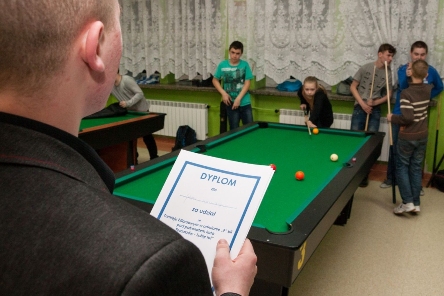 W ubiegłym tygodniu odbyły się w S.P. nr 13 warsztaty pool bilardowe dla dzieci ze szkół podstawowych. Prowadzone były nieodpłatnie, społecznie, przez bilardzistę z Tomaszowa Adriana Dela. Może on pochwalić się dwukrotnym mistrzostwem Polski UKS, drużynowym wicemistrzostwem Polski UKS, trzykrotnym mistrzostwem Polski juniorów i meczami rozgrywanymi w polskiej Bilardowej Ekstraklasie. Organizatorem było nasze koło "Tomaszów - Lubię To!", którego Adrian jest wiceprzewodniczącym.