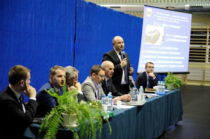 Nie zabrakło pytań od mieszkańców. Odpowiedzi udzielał prezydent, urzędnicy miejscy oraz prezesi komunalnych spółek. Pojawiły się głosy o możliwości zorganizowania przez protestu na drodze krajowej nr 48, w celu wymuszenia budowy chodnika oraz poprawy wjazdów do posesji wzdłuż drogi. Marcin Witko uspokajał i przekonywał, że najpierw spróbuje wynegocjować u władz wojewódzkich i krajowych potrzebne rozwiązania.