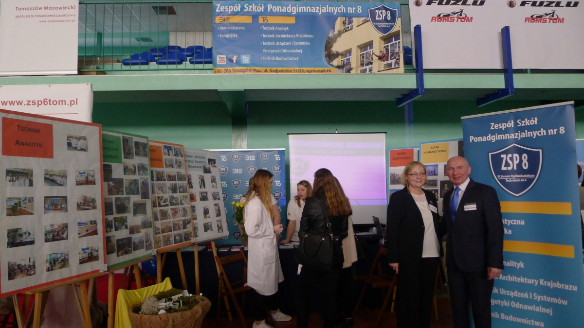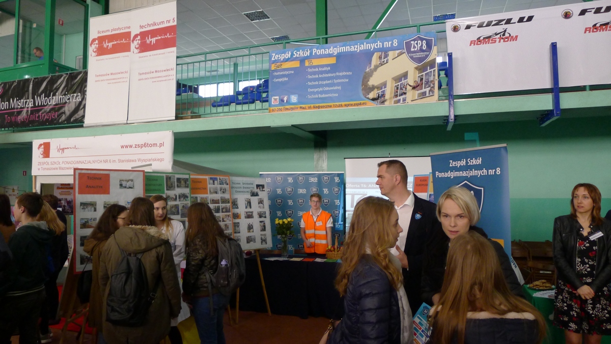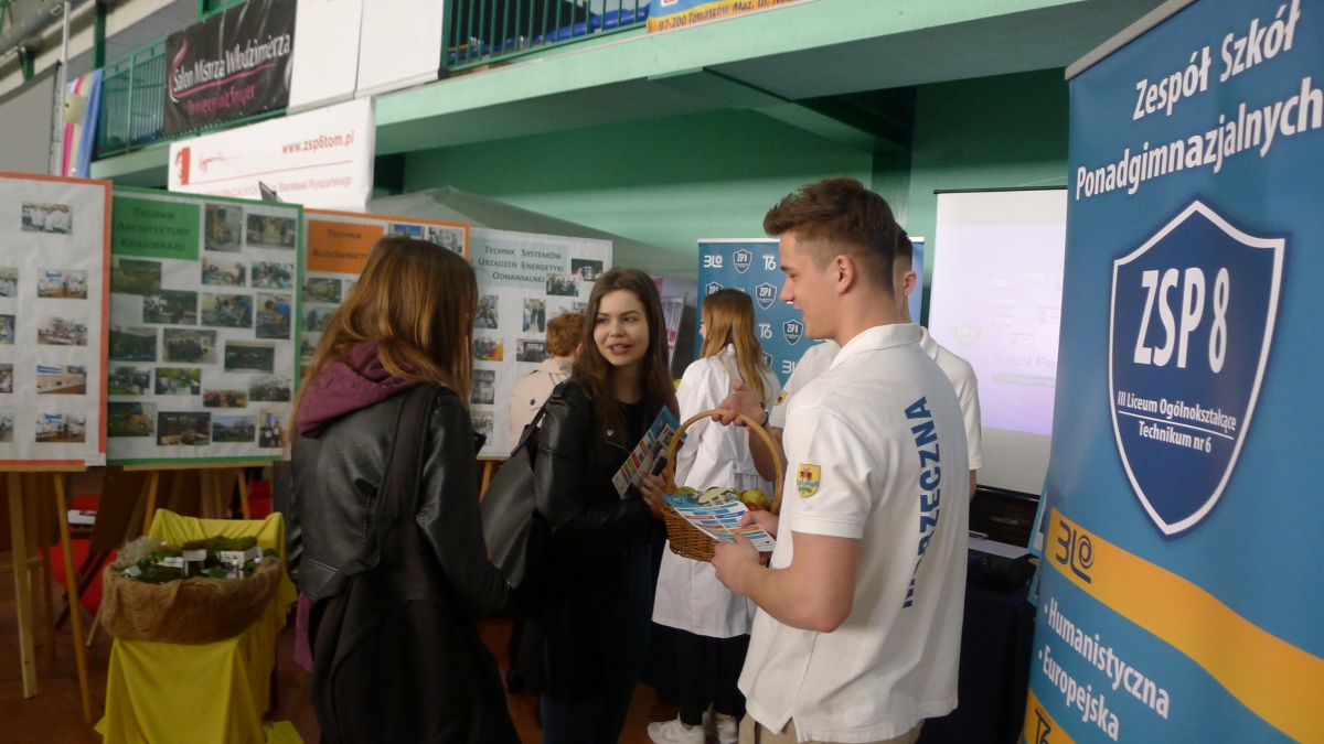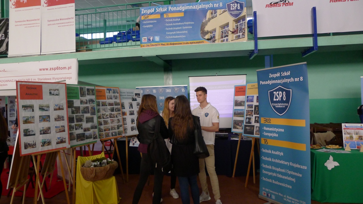 Hala sportowa w „samochodówce” pomieściła ekspozycje 53 pracodawców różnych branż oraz stanowiska Urzędów i służb mundurowych z terenu miasta. W bardzo ciekawy sposób zaprezentowały się wszystkie szkoły ponadgimnazjalne z Tomaszowa Mazowieckiego. Stanowisko naszej Szkoły odwiedziło wielu gimnazjalistów, którzy podczas rozmów z naszymi uczniami wykazywali duże zainteresowanie zarówno nauką w licem jak i w technikum.