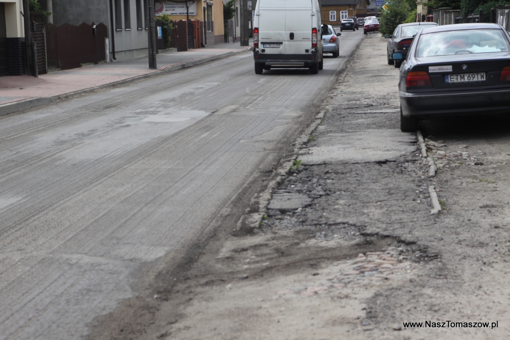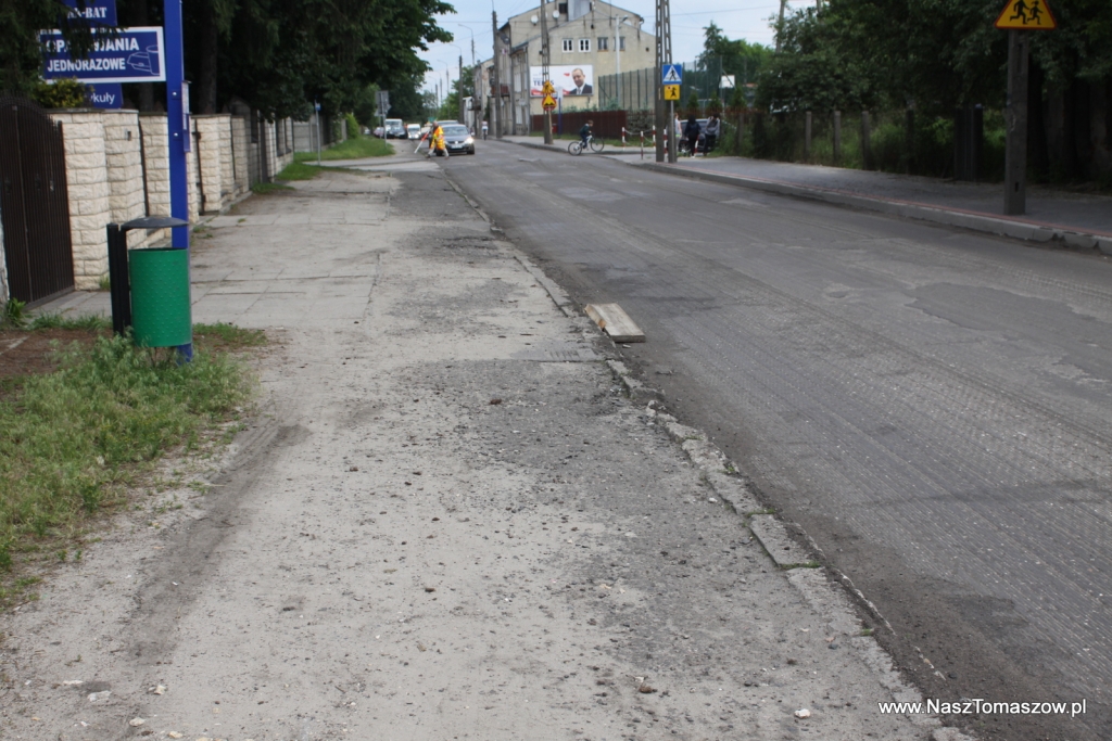 Trudno się z taką opinią nie zgodzić, jednak warto zauważyć, że jest to stała praktyka, stosowana przez powiat. Doskonałym przykładem jest właśnie ulica Legionów. Jakiś czas temu ułożono fragment nowego chodnika na odcinku od ulicy Piłsudskiego do Słowackiego. W tym roku postanowiono zrobić kolejny fragment w kierunku ulicy Smugowej. Nie o estetykę jednak tym przypadku chodzi ale o fakt, że chodnik wymieniono jedynie po lewej stronie jezdni. Może nie byłoby w tym jeszcze nic tragicznego, gdyby nie fakt, że równocześnie wykonano nakładkę w postaci asfaltowego dywanika oraz podniesiono włazy do studzienek kanalizacyjnych. Chodnik po prawej stronie drogi pozostawiono w takim stanie ,w jakim był dotychczas, czyli katastrofalnym (co widać na załączonych fotografiach).