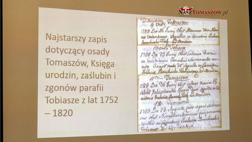 "Świetna okazja, żeby porozmawiać o historii Tomaszowa Mazowieckiego w tym wyjątkowym roku, w którym obchodzimy stulecie odzyskania przez Polskę niepodległości, a tak naprawdę również, w którym obchodzimy 230-lecie pojawienia się pierwszej wzmianki o naszym mieście, o Tomaszowie Mazowieckim. Pierwsze wzmianki, to rok 1788, czerwiec roku 1788.