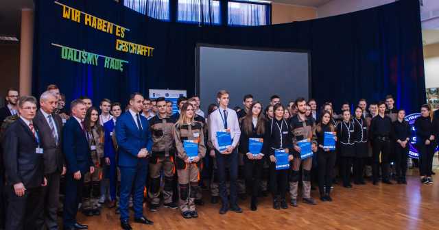 Koordynator projektu Arkadiusz Świątek przedstawił zaproszonym gościom, radzie pedagogicznej i społeczności uczniowskiej cele i osiągnięte rezultaty projektu oraz zadania jakie wykonywali uczestnicy podczas 4 tygodniowych praktyk zawodowych w Niemczech.