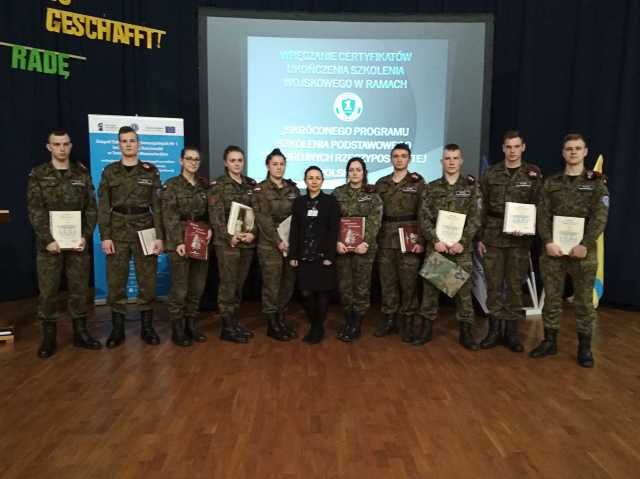 Certyfikaty ukończenia szkolenia wojskowego w obecności nauczycieli i kadetów klas młodszych, wręczyli naszym najstarszym kadetom pułkownik Adam Grela, zastępca dowódcy 25 Brygady Kawalerii Powietrznej, dyrektor Dariusz Kwiatkowski, oraz wicedyrektor Jolanta Nikodemska, wychowawca klasy Joanna Kryszewska i opiekun klas wojskowych major rezerwy Sławomir Miszczuk. Najlepsi kadeci wśród których byli: Anna Sygitowicz, Patrycja Pysklak, Jakub Sosnowski, Krystian Śliwka, Jakub Rudzki, Katarzyna Świąder, Marlena Wujek, Oskar Pełka, Adrian Bytroński i Mateusz Mieszczankowski otrzymali nagrody rzeczowe ufundowane przez Wojskowe Centrum Edukacji Obywatelskiej, jak również znaczki kawalerii powietrznej ufundowane przez dowódcę 25 brygady.
