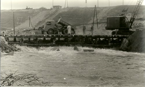 - Należy również wspomnieć, że stosowano przestarzały i mało wydajny sprzęt do robót budowlanych, taki jak dźwig gąsienicowy do układania betonu uzyskany po remanencie z budowy we Włocławku, koparki 1 m3, spycharki 100 KM i betoniarki 500 l.
