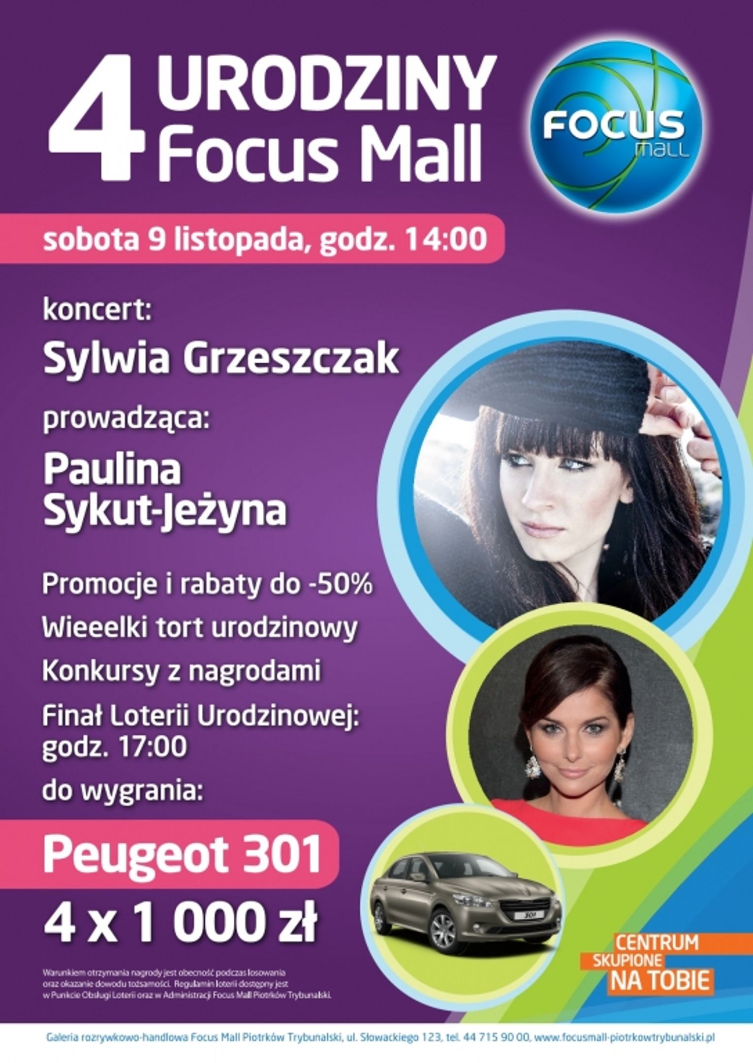Szykuje się naprawdę wyśmienita impreza urodzinowa. Dla wielbicieli muzyki galeria Focus Mall przygotowała nie lada gratkę - na scenie wystąpi Sylwia Grzeszczak. Wokalistce towarzyszył będzie ośmioosobowy zespół. W czasie koncertu na żywo usłyszymy największe przeboje artystki oraz utwory z jej nowej płyty.