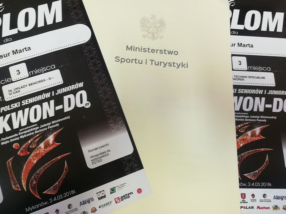 Wartym podkreślenia jest fakt, iż nasza koleżanka na gali finałowej Pucharu Polski oficjalnie otrzymała listy gratulacyjne od Ministra Sportu, Witolda Bańki, a także zebrała podziękowania i gratulacje od władz Polskiego Związku Taekwon-do za swoje osiągnięcia w 2017r. Przypominamy, że jest ona czterokrotną Mistrzynią Europy i aktualną Mistrzynią Świata w tej dyscyplinie. Marcie serdecznie gratulujemy i życzymy dalszych sukcesów.
