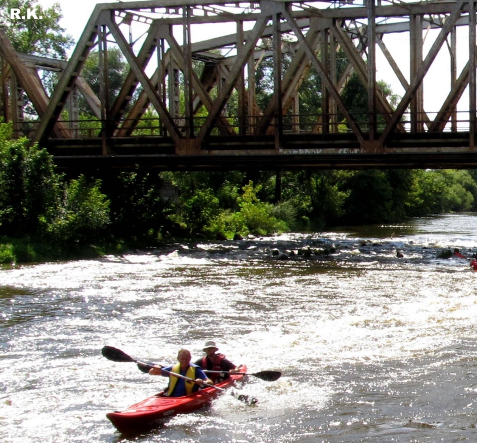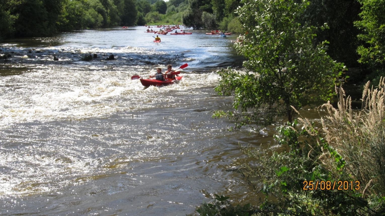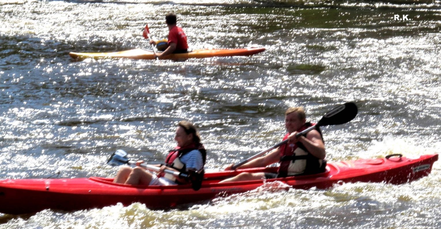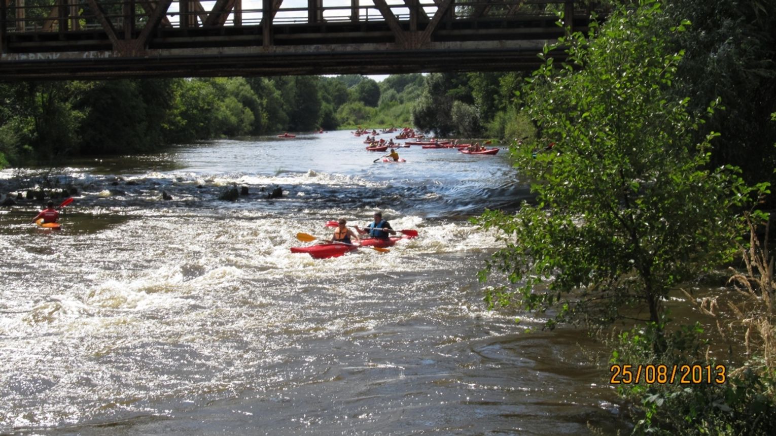 Zdjęcia zrobiono przy moście kolejowym. Pokazują emocje, przy pokonywaniu progu wodnego.