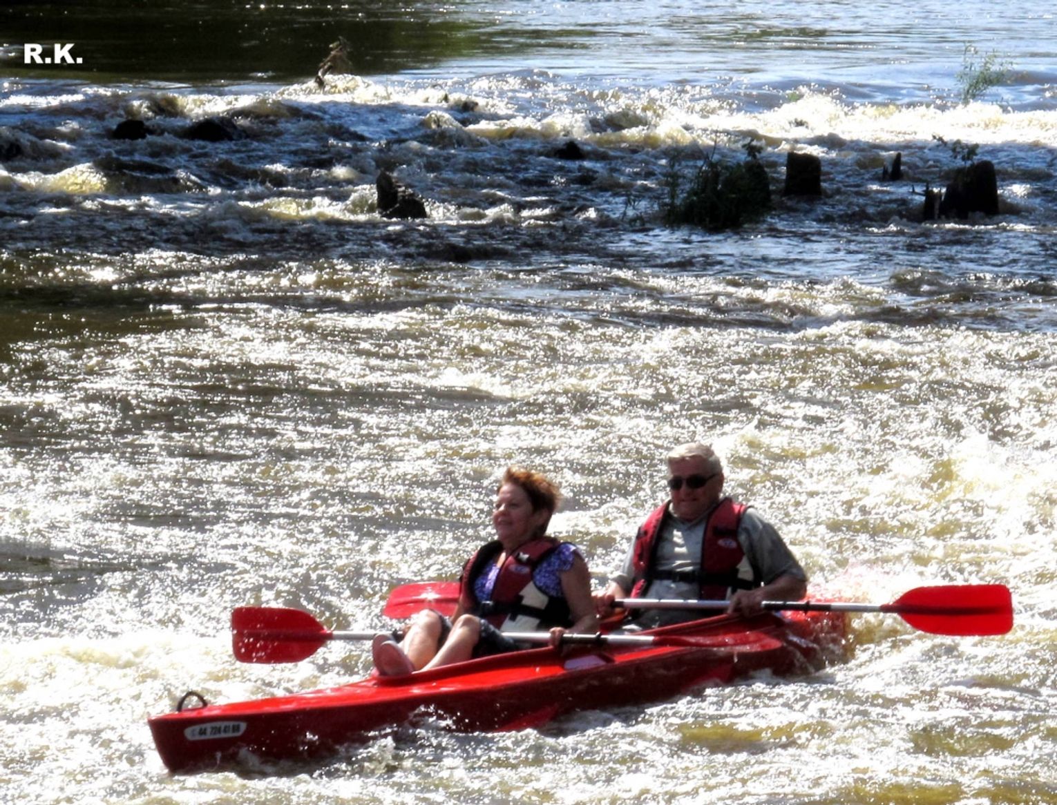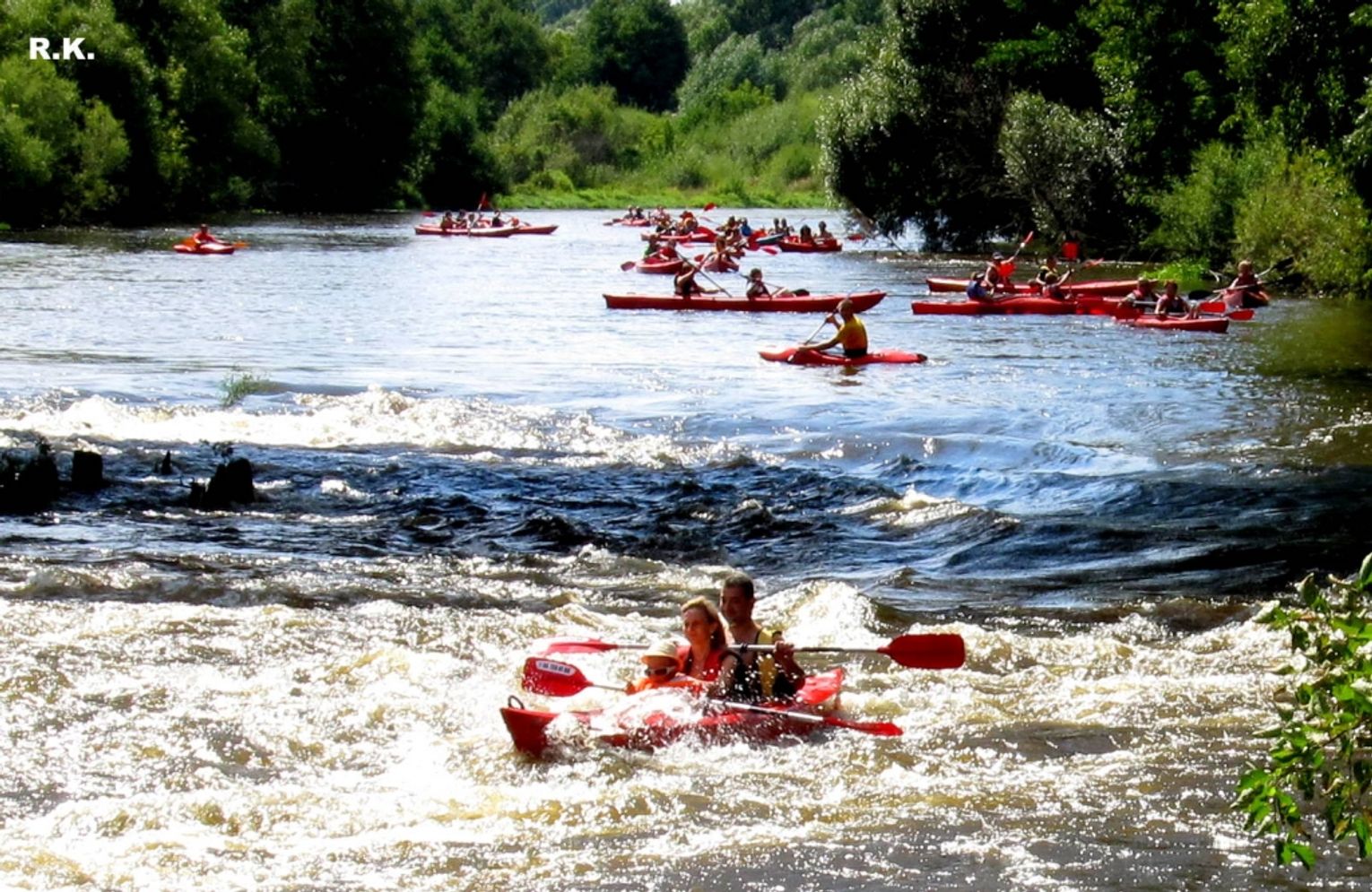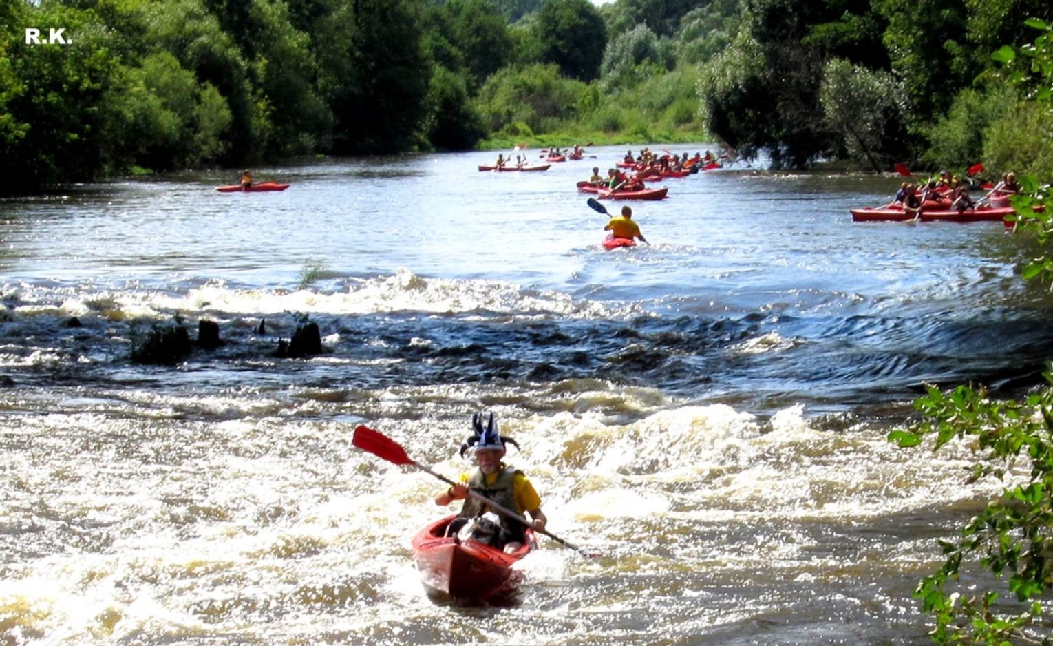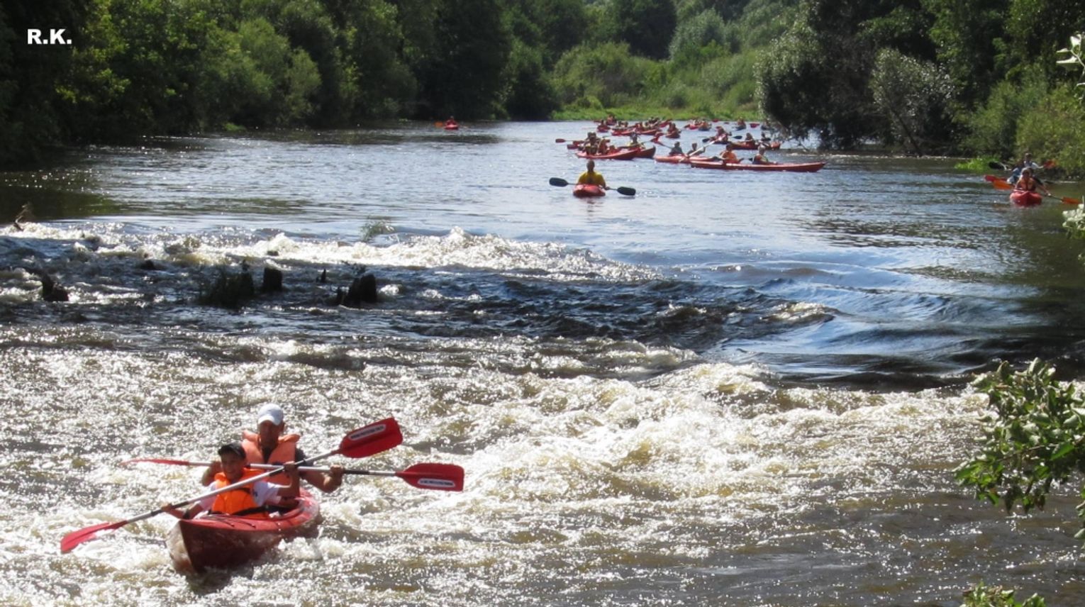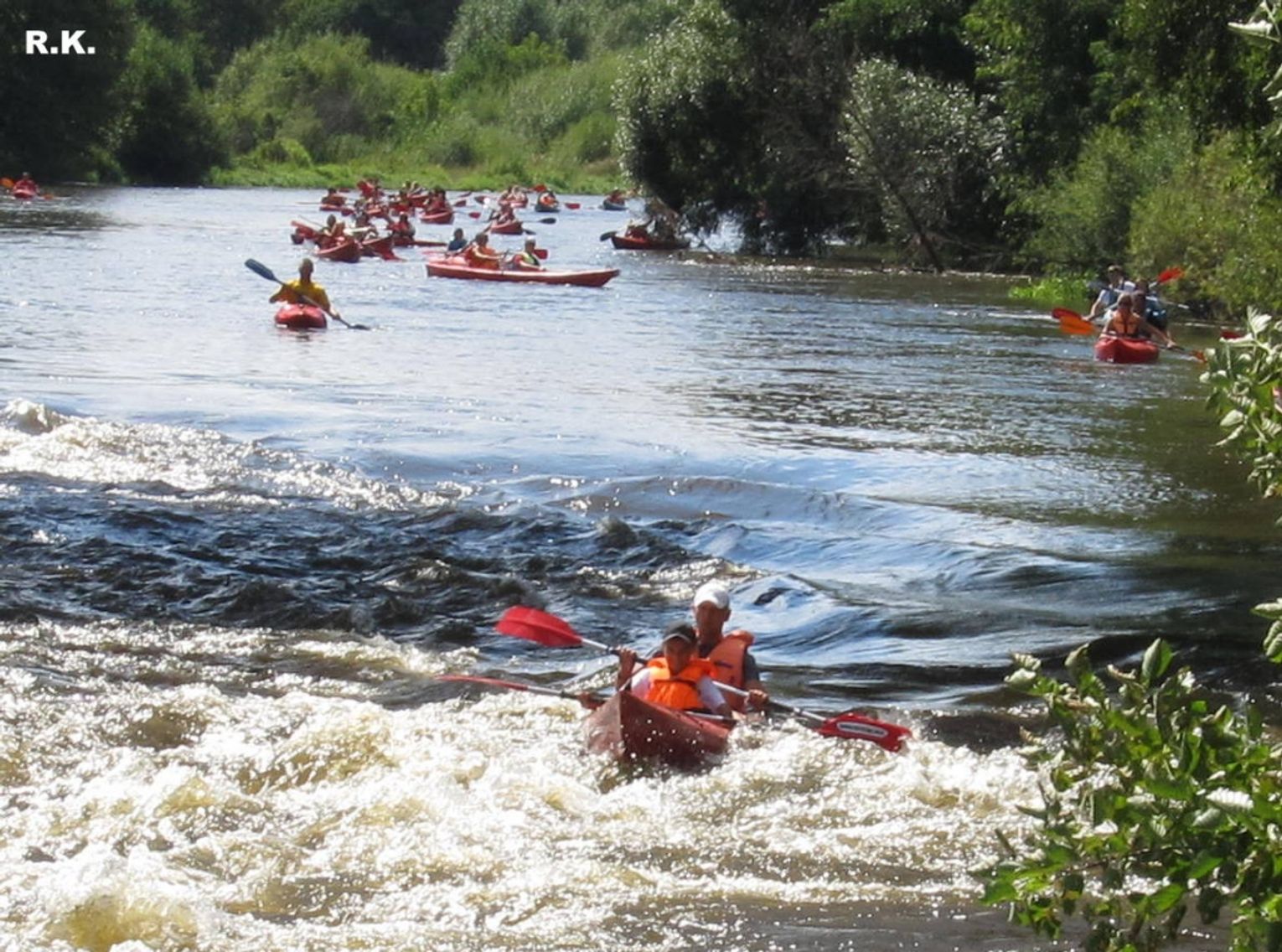 Zdjęcia zrobiono przy moście kolejowym. Pokazują emocje, przy pokonywaniu progu wodnego.