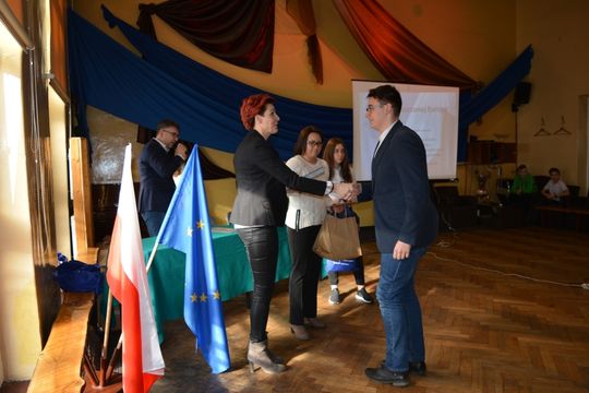 Zwycięzcą został uczeń Gimnazjum nr 6 Jakub Kosz, który razem z opiekunem Ewą Rosół, pojedzie na wycieczkę do instytucji studyjnych Unii Europejskiej w Brukseli na zaproszenie europosła Jacka Saryusz Wolskiego. Kolejne miejsca zajęli: Maksymilian Zięba z Zespołu Szkół nr 8, Antoni Węgliński z Gimnazjum nr 7. Wyróżnienia przyznano Krzysztofowi Malinowskiemu z Gimnazjum nr 7 oraz Filipowi Pęczkowi z Zespołu Szkół nr 8.