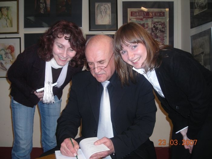 Tak po raz pierwszy w życiu trafiłem na zaplecze księgarni w ogóle, a najlepszej księgarni w Tomaszowie w szczególności. Miałem przed sobą zaledwie dwa tygodnie urlopu, ale ich razem z Basią nie zmarnowaliśmy. Uroczysta promocja w Galerii Arkady, połączona z moimi imieninami (13 października) zgromadziła tyle uczestników, że zabrakło miejsc siedzących. Pojawili się ludzie reprezentujący władze miasta, masa kolegów i koleżanek z dawnych lat, nawiązały się nowe znajomości. Wtedy jeszcze nie wiedziałem, że te spotkania zaowocują dalszymi niesamowitymi skutkami, dodajmy, że bardzo dla mnie pozytywnymi. Idąc za ciosem pokazaliśmy się jeszcze raz wspólnie w trakcie Herosów Rock’n’Rolla Antka Malewskiego, następnie w Stowarzyszeniu Abstynenckim „ALA”. Tam zdarzył się moment historyczny. Po raz pierwszy w historii Klubu AA w Tomaszowie odbyło się wzorem spotkań klubów z Kanady i z USA tak zwane „Spotkanie Speakerskie”, a speakerem byłem ja sam. Dostałem od szefa grupy pół godziny i kazał mi się streszczać. Rozgadałem się, jak to mówią. Po godzinie moich wygłupów, kiedy nikt mi nie przerywał, a pełna sala wpatrzonych we mnie ludzi od czasu do czasu nagradzała moje wystąpienie oklaskami, zerknąłem dyskretnie na prowadzącego, a ten wykonał palcem wskazującym kółeczko, którym kilka razy zakręcił. Zrozumiałem, że tym samym anulował limit czasowy mojego wystąpienia. Dodam tylko, że poznałem tam wielu bardzo ciekawych ludzi i sprzedałem nadspodziewaną ilość egzemplarzy moich książek.