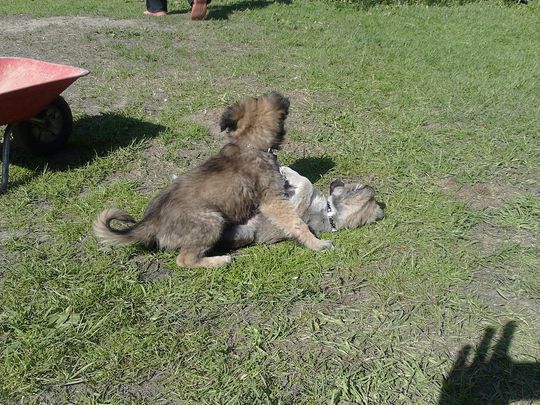 Pięć tygodni temu dokładnie 21 kwietnia zaadoptowałam pieski z waszego schroniska. Są bardzo pocieszne i z dnia na dzień coraz większe. Lubią jeść i razem się bawić. Większy wabi się Bolek a mniejszy Lolek tak jak bracia z kreskówki.