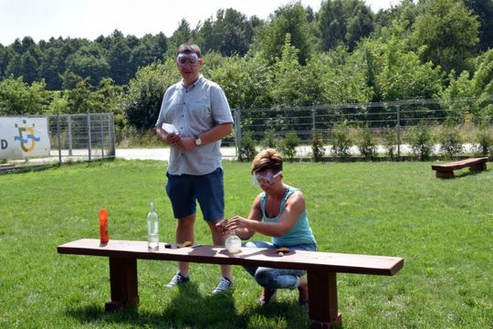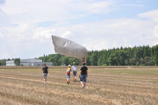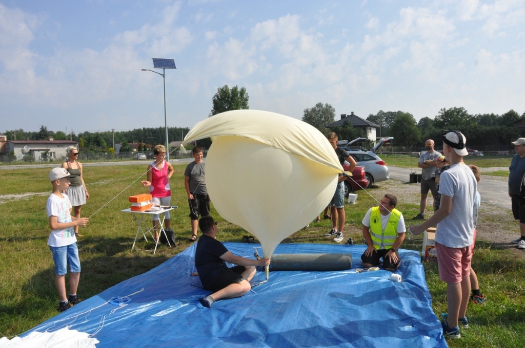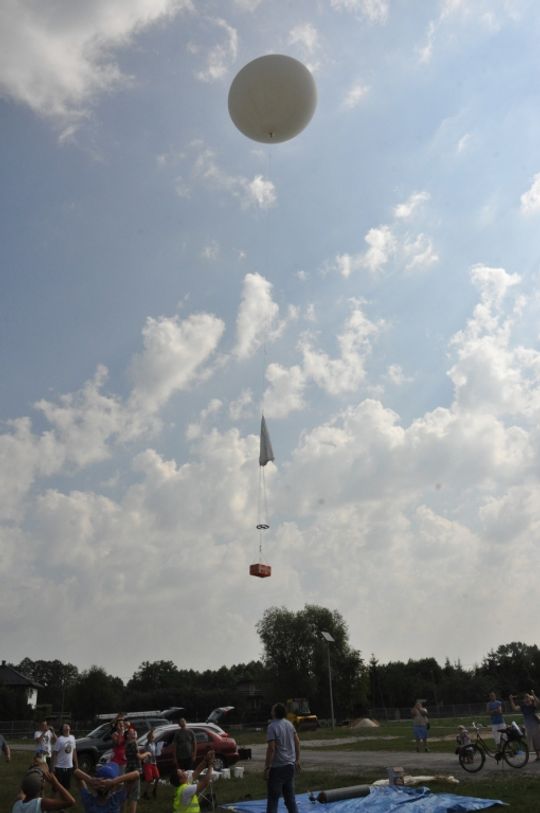 Czas płynął bardzo szybko w atmosferze pracy, zaangażowania, ale również świetnej zabawy. W efekcie 4 sierpnia udało się skonstruować i wysłać do stratosfery sondę z balonem meteorologicznym. Balon wystartował z placu targowego przy ulicy Leśnej w Ujeździe. Kapsuła wyposażona była w czujnik temperatury, aparat fotograficzny, nadajnik z GPS i APRS , który umożliwił sprawdzanie jej położenia i odnalezienie sondy po wylądowaniu. Oczywiście umieszczona również została kamera, która zarejestrowała lot. Misja została zakończona olbrzymim sukcesem. Balon wzniósł się na wysokość ponad 34 km !! To więcej niż zakładali organizatorzy. Następnie pękł, a kapsuła na spadochronie osiadła w okolicach Rzeczycy, na terenie kompleksu leśnego. Grupa pościgowa, przy współpracy z grupą śledzącą lot z bazy w Ujeździe podjęła kapsułę. Umieszczony w kapsule sprzęt dostarczył wspaniałego materiału, który po opracowaniu zostanie przedstawiony szerszej publiczności w czasie podsumowania projektu i prezentacji 2 września w Gminnym Ośrodku Kultury w Ujeździe.