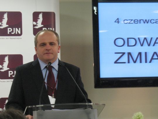 Jeśli nie powstanie rząd zdecydowany na poważne zmiany jako PJN skoncentrujemy się na "pilnowaniu" najważniejszych spraw w Sejmie, polityki w dotychczasowym stylu popierać nie będziemy i będziemy głośno informować społeczeństwo, że są inne możliwości wybierania. Taka nasza postawa najbardziej przeraża stare partie. Nie złoszczę się na tych, którzy dziś jeszcze wybierają tylko między Tuskiem a Kaczyńskim. Potrzebują zapewne kolejnych lat, by zmienić zdanie. Miłość wyborców do szefów starych partii ma cechy uzależnienia, a z tymi trudno walczyć. Mój sprzeciw wzbudza jednak postawa tych, którzy odrzucając wybór między - jak Pan powiedział - dżumą a cholerą nie chcą nic zrobić by poza ten wybór wyjść. Jako PJN nie zajmiemy pierwszego miejsca w tych wyborach, naszym sukcesem będzie wejście do parlamentu, ale potrzebujemy poparcia a przynajmniej życzliwości tych, którzy odrzucają politykę Tuska i Kaczyńskiego a zarazem, którym nie jest wszystko jedno. Matematyki Pan nie ominie, zdania sprzeciwu nie będzie wyrażała liczba głosów nieważnych, bo utoną w morzu nieobecnych. My dzisiaj jesteśmy jeszcze młodzi, ale mamy argumenty i pewne doświadczenie. Są w życiu momenty kiedy trzeba się opowiedzieć po stronie argumentów, a nie ułudy sondaży. Powiedzmy sobie prawdę: im więcej wiary w publikowane sondaże tym mniej szans, że kiedykolwiek zmienimy "popisową" politykę. PJN potrzebuje dodatkowego mandatu do głoszenia potrzeby zmian i mówienia Polakom prawdy, że reformy w państwie są konieczne. Że należy wreszcie lepiej dzielić to co jest, czyli naprawić budżet aby stworzyć płaszczyznę do obniżki podatków i wprowadzenia polityki na rzecz rodziny, zwiększenia dzietności - bo za kilka lat będzie nas o setki tysięcy mniej a za kilkanaście miliony. Idąc do tych wyborów i walcząc o wejście do Sejmu walczymy o to, by polityka była konkretna, ambitniejsza, pozbawiona zapiekłości. By tak było, konieczne są poważne zmiany ustrojowe, a zatem zmniejszenie liczby posłów o połowę i powiązanie ich z wyborcami a nie z centralami partyjnymi, czyli najlepiej wybieranie ich w małych jednomandatowych okręgach w systemie większościowym a także wzmocnienie ich roli kontrolnej wobec rządu. Tylko takie podejście może odbudować pozycję parlamentarzysty w Polsce a także sens republiki. Także Senat w obecnym kształcie nie ma racji bytu, powinien być radykalnie zmniejszony i pochodzić z nominacji lub delegowania. Bycie senatorem nie powinno być "pracą" ale honorowym zajęciem m.in. dla przedstawicieli środowisk samorządowych i uniwersyteckich. Rozstrzygnięcia wymaga też niszcząca polski system polityczny sprzyjająca kłótniom "konstytucyjna konkurencja" pomiędzy urzędami premiera i prezydenta w dziedzinie polityki zagranicznej i bezpieczeństwa. Konieczne są także pewne reformy na szczeblu samorządowym, myślę o m.in. o bezpośrednich wyborach marszałka województwa.