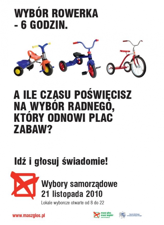W imieniu Grupy Twórczej "luli lali" informujemy o ogólnopolskiej kampanii społecznej "Masz głos, masz wybór", która odbywa się również na terenie naszego miasta. W różnych jego częściach - zwłaszcza w Centrum, oraz w instytucjach takich jak Urząd Miasta, MOK czy MDK zostały rozwieszone plakaty apelujące (całkowicie bezstronnie) o udział w wyborach samorządowych razem z godziną otwarcia lokali wyborczych. Akcja ta ma na celu uświadomienie mieszkańcom Tomaszowa jaką wagę mają świadomie podejmowane decyzje w sprawach tak ważnych jak wybór ekipy "trzymającej władzę". Serdecznie zapraszamy wszystkich Tomaszowian na Plac Kościuszki, w czwartek 18.11 o godzinie 16:00, gdzie zasięgnąć będzie można informacji na temat głosowania, ilości kart i sposobu w jaki należy oddawać swe głosy.