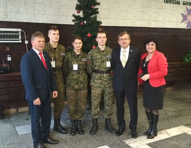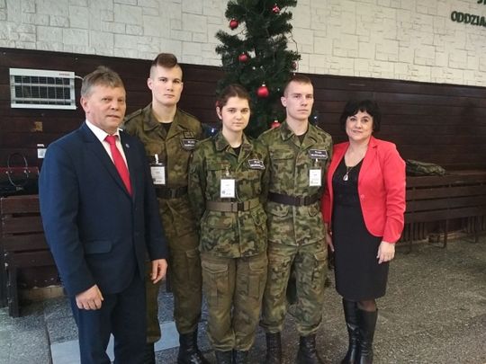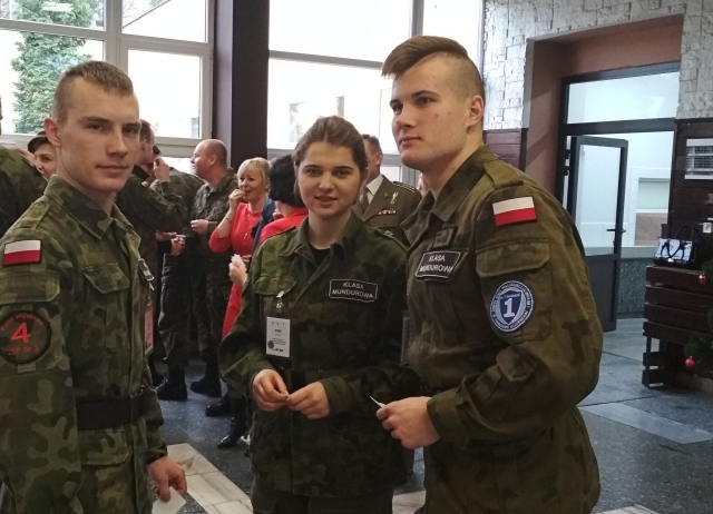 Zespół Szkół Ponadgimnazjalnych nr 1 reprezentowali dyrektorzy Dariusz Kwiatkowski i Jolanta Nikodemska, opiekun klas wojskowych mjr rez. Sławomir Miszczuk oraz delegacja uczniów klasy czwartej Ewelina Rydz, Oskar Pełka i Jakub Rudzki. Nasza szkoła w sposób szczególny związana jest z żołnierzami batalionu. Ma to związek nie tylko z udziałem naszych klas wojskowych w projekcie Ministra Obrony Narodowej pod nazwą "Edukacja wojskowa", ale również wieloletnią współpracą szkoły z kawalerzystami w dziedzinie wychowania proobronnego. Dlatego z ogromną radością przyjęliśmy zaproszenie dowódcy batalionu pułkownika Piotra Wrony, do udziału w żołnierskim wigilijnym spotkaniu. Razem z dowódcą brygady pułkownikiem Adamem Marczakiem, kapelanem brygady majorem Piotrem Dębińskim, pracownikami wojska oraz żołnierzami batalionu, składaliśmy sobie wzajemne życzenia pogodnych, zdrowych i wesołych świąt bożego narodzenia oraz szczęścia w nadchodzącym nowym roku.