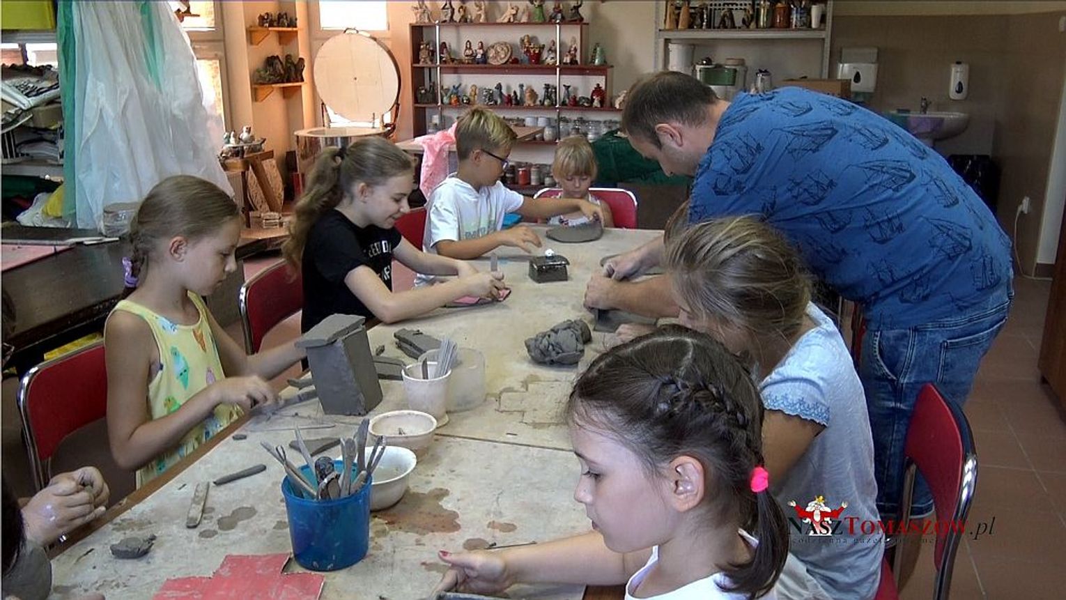 Na dworze upał, a w pomieszczeniach "Tkacza" chłód i wspaniała zabawa z gliną. Uczestnicy pod czujnym okiem instruktora mieli możliwość wykonać ceramiczne szkatułki. Wszyscy fantastycznie bawili się. Były dzieci, które dopiero pierwszy raz uczestniczyły w takich zajęciach, ale były też osoby, które wiele razy były w "Tkaczu" i mają już w domu kilka przedmiotów własnoręcznie wykonanych gliny.