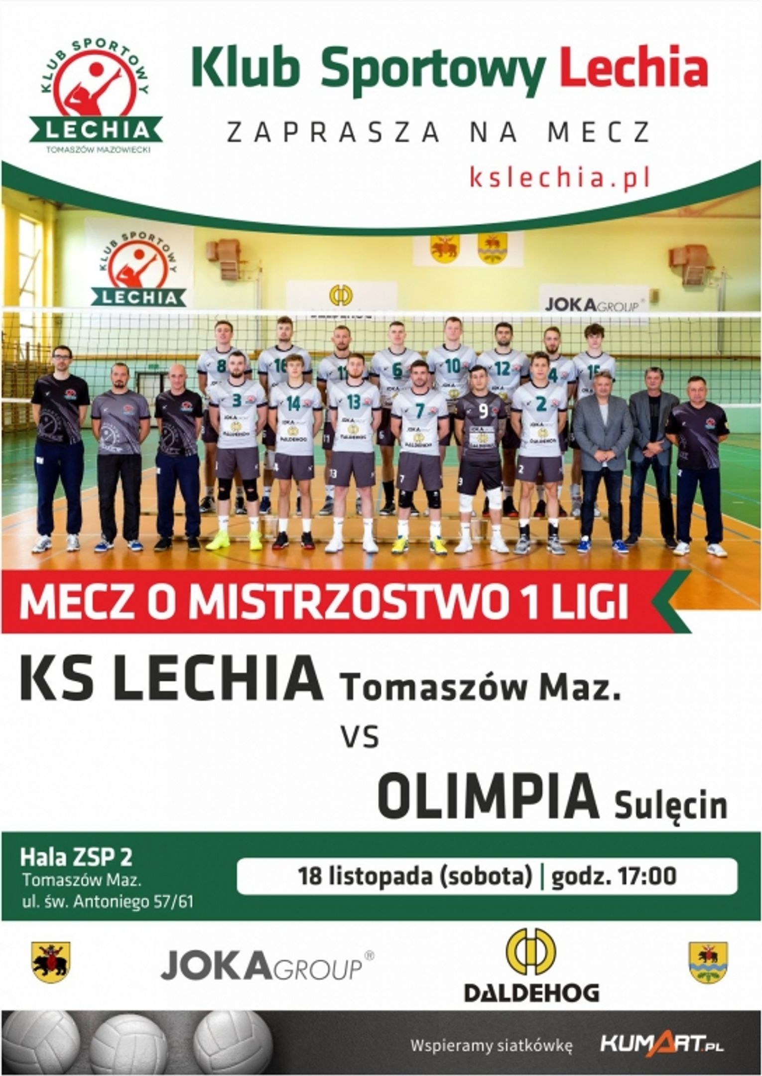 Spotkanie odbędzie się 18 listopada 2017 (sobota), w hali ZSP nr 2, ul. Św. Antoniego 57/61 o godz. 17.00.