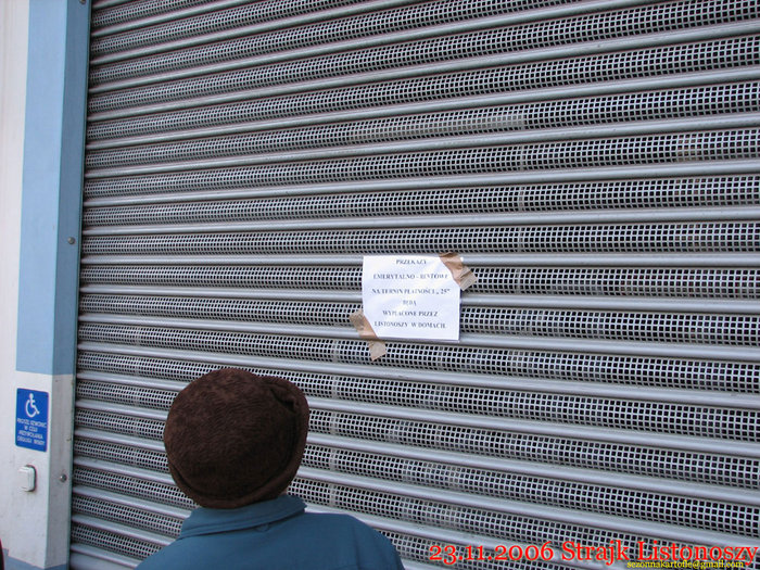 Strajk oficjalnie w Tomaszowie Mazowieckim zaczął się 20 listopada i trwa do dziś. Listonosze za dnia nie wychodzą "w teren" tylko stoją za bramą Poczty. Sam budynek jest zamknięty. Nie wydaje się listów i paczek. Taryfę ulgową zastosowali wobec ludzi starszych - emerytów i rencistów - im wydaje się należne pieniądze. Muszą jednak osobiście stawić się do Urzędu Pocztu co czasem jest sporym wyzwaniem.