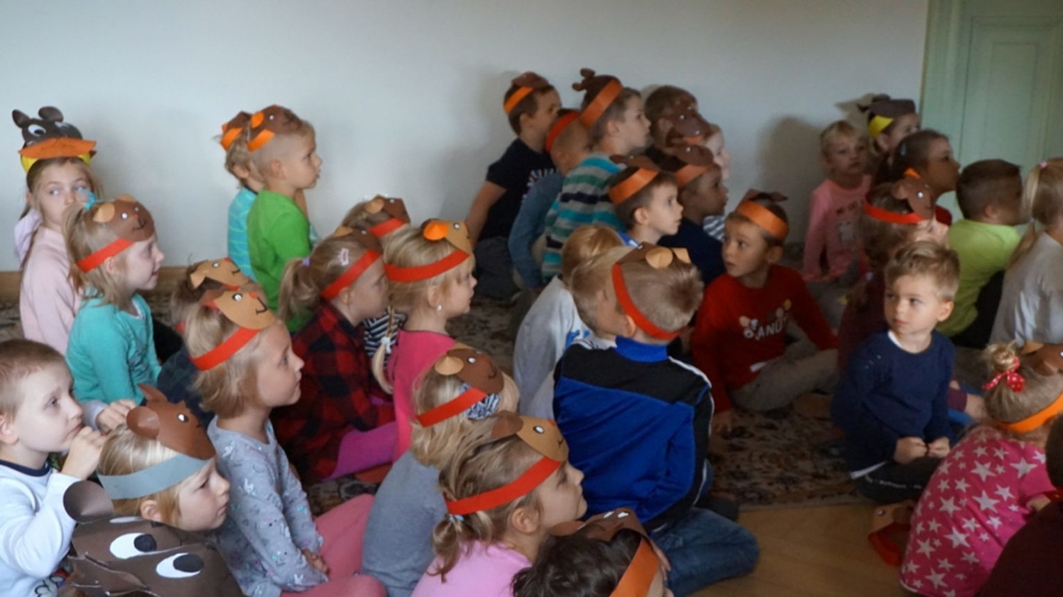 W trakcie wspólnej zabawy, dzieci miały okazję tańczyć do rytmicznych misiowych piosenek Dzieciaki nie zapomniały również złożyć szanownemu Jubilatowi życzeń oraz odśpiewały „sto lat”. Misio był bardzo wzruszony i szczęśliwy, a w rewanżu podarował dzieciom ,,małe co nieco”- pyszne lizaki. Pani Natalia Jakóbczyk z Operatora Finansowego „Bankier” przeczytała dzieciom opowiadanie pt . Jak mis Kuba nauczył się dbać o czystość Adrienne Heymans.