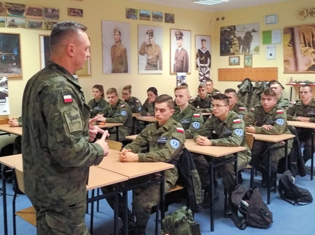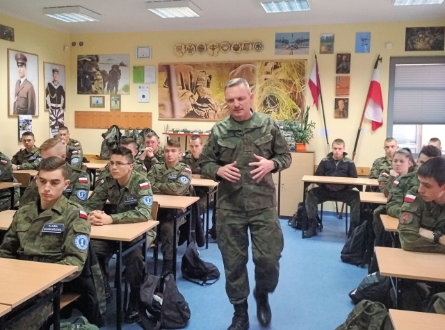 W czwartek 9 listopada w Zespole Szkół Ponadgimnazjalnych nr 1 w Tomaszowie Mazowieckim, odbyło się spotkanie kadetów klasy czwartej z pomocnikiem Dowódcy 25. Brygady Kawalerii Powietrznej ds. Podoficerów starszym chorążym sztabowym Jackiem Nikodemskim.