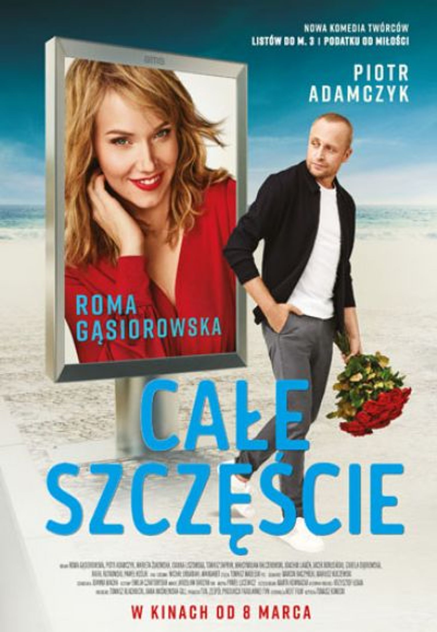 "Całe szczęście” to pełna uroku i wakacyjnej energii historia o miłości, która rodzi się w nieprzewidzianych okolicznościach. W spokojne i uporządkowane życie Roberta, muzyka z orkiestry symfonicznej (Piotr Adamczyk), który samotnie wychowuje dziesięcioletniego synka Filipa (Maks Balcerowski), niespodziewanie wbiega pełna energii i uroku popularna gwiazda fitness Marta (Roma Gąsiorowska). Dwa różne charaktery, spojrzenia na miłość i życie. Jej świat to wielkie miasto, egzotyczne podróże i sport. Marta ma swoje programy telewizyjne, wydaje książki kulinarne, a jej twarz gości na okładkach najpopularniejszych magazynów. Robert to chodzące zaprzeczenie „sportowego trybu życia”. Jego świat to spokojna przystań, rodzicielskie wyzwania, kosz pełen prania, klasówki z matematyki syna – wszystko to działa, dopóki w jego życiu nie pojawia się Marta…