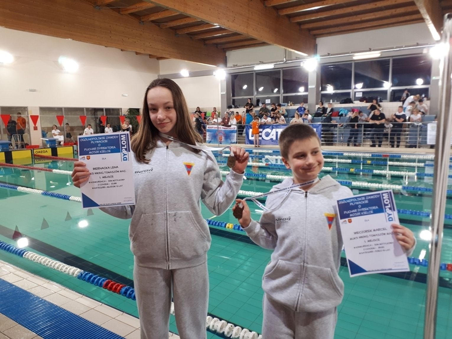 Trener Tomasz Zając wytypował do rywalizacji dwoje zawodników: Lenę Biernacką (12l.) i Marcela Wieczorka (10l.). Pływacy startowali w stylach - dowolnym, grzbietowym, motylkowym i zmiennym na dystansach 50, 100 i 200m. Najlepsze wyniki uzyskali jednak w swoich wiodących stylach. Lena wywalczyła dwa złote medale w stylu motylkowym na dystansie 50m (czas 33:88) i 100m (czas 1:18,43) w kategorii młodzik 12l.
