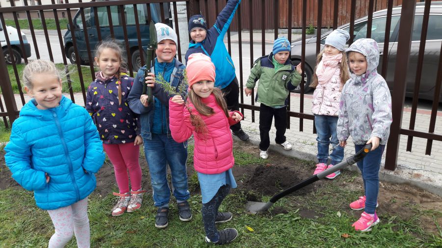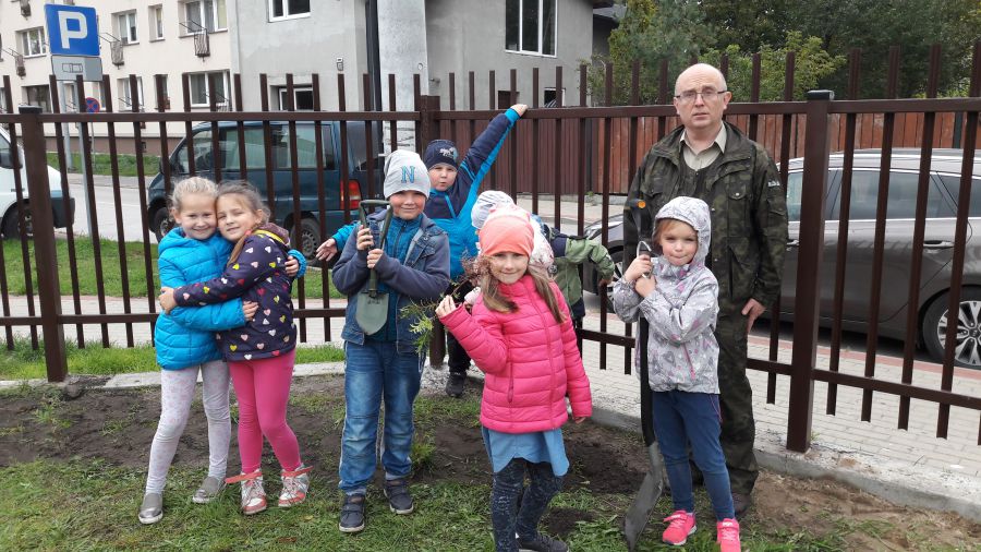 10 października 2017r. uczniowie klasy I a wraz z wychowawczynią zostali zaproszeni do Przedszkola nr 8 na wspólne sadzenie tui i świerków. W programie przewidziano teatrzyk cieni pt. „Czerwony Kapturek”, lekcję poprowadzoną z leśnikiem p. Tomaszem Rogaczewskim, na której dzieci dowiedziały się, jak ważna jest rola drzew w życiu człowieka i przyrody. Święto Drzewa zorganizowała p. B. Ostrowska.