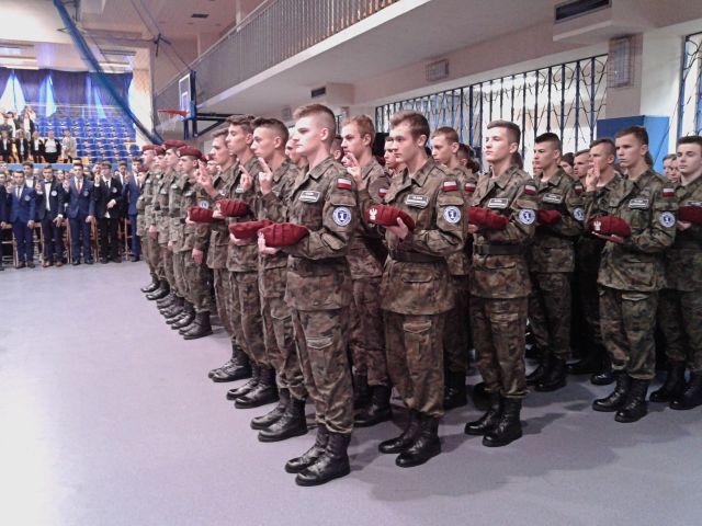 W klasach wojskowych szczególny nacisk kładziemy na wychowanie proobronne, na ideały zawarte w słowach „Bóg, Honor, Ojczyzna”. To, że nasi uczniowie noszą mundury i bordowe berety, zobowiązuje.