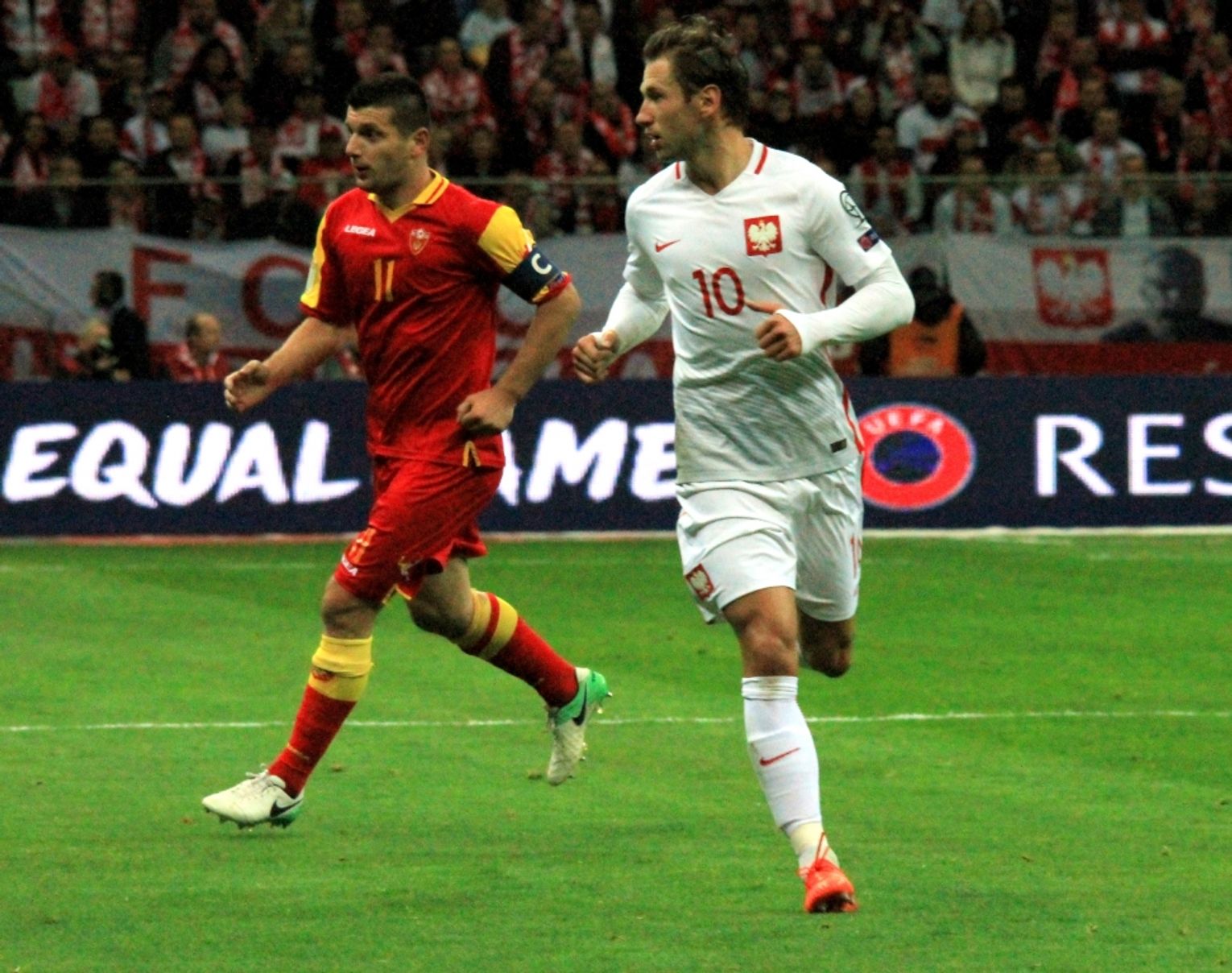 W minioną niedzielę na stadionie Narodowym, Reprezentacja Polski Adama Nawałki rozegrała ostatni mecz eliminacyjny do Mistrzostw Świata, które w 2018 roku odbędą się w Rosji. Po znakomitej pierwszej połowie wygranej 2:0, nasza drużyna w drugiej straciła rozpęd i rywale doprowadzili do wyrównania 2:2. Na szczęście piłkarze trenera Nawałki potrafili wstać z kolan i zaliczyć dwa kolejne trafienia. Ostatecznie mecz zakończył się zwycięstwem 4:2 i nasi piłkarzy już mogą powoli szykować formę na czerwiec. Już dzisiaj zapraszamy do obejrzenia naszej galerii zdjęć. Autor RedDevils