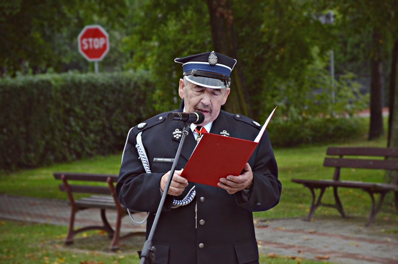 Dowódca uroczystości druh Daniel Mizerski członek OSP Inowłódz złożył meldunek druhowi Tadeuszowi Cisowskiemu Wiceprezesowi Zarządu Oddziału Wojewódzkiego ZOSP RP w Łodzi, Prezesowi Zarządu Oddziału Powiatowego ZOSP RP w Tomaszowie Mazowieckim o gotowości jednostek OSP z terenu Powiatu Tomaszowskiego do uroczystości Jubileuszu 115 lat OSP Inowłódz.