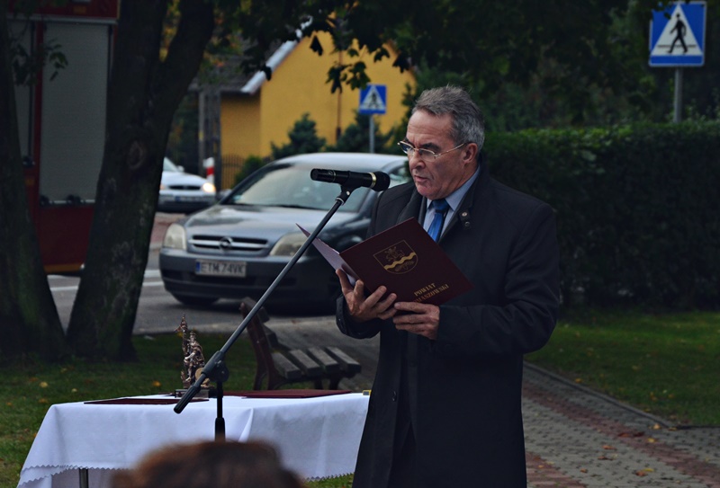 Uroczystego przekazania zestawu dokonał Wójt Gminy Inowłódz Pan Bogdan Kącki, Komendant Powiatowy Państwowej Straży Pożarnej w Tomaszowie Mazowieckim st. bryg. Krzysztof Iskierka oraz przedstawiciel Wspólnoty Gruntowej w Inowłodzu Pan Jan Poręba.