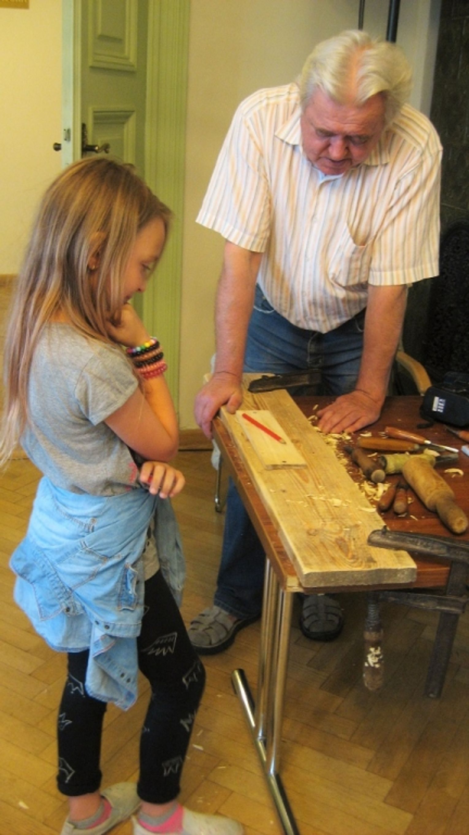 Innym pomysłem na wyrażenie własnych emocji było wykonanie płaskorzeźby w desce lipowej pod kierunkiem Władysława Mazurka od 11 lat należącego do Stowarzyszenia Amatorów Plastyków. Hobbista wykonujący z zamiłowaniem dzieła o tematyce sakralnej jak i postacie zwierząt przekazywał dużym i małym tajniki swojej pasji. Uczestnicy zajęć za pomocą dłuta najczęściej wyżłabiali własne inicjały lub imiona swoich bliskich.