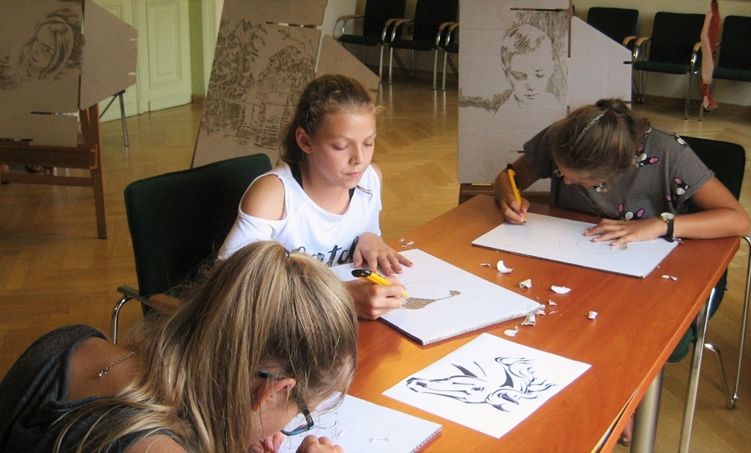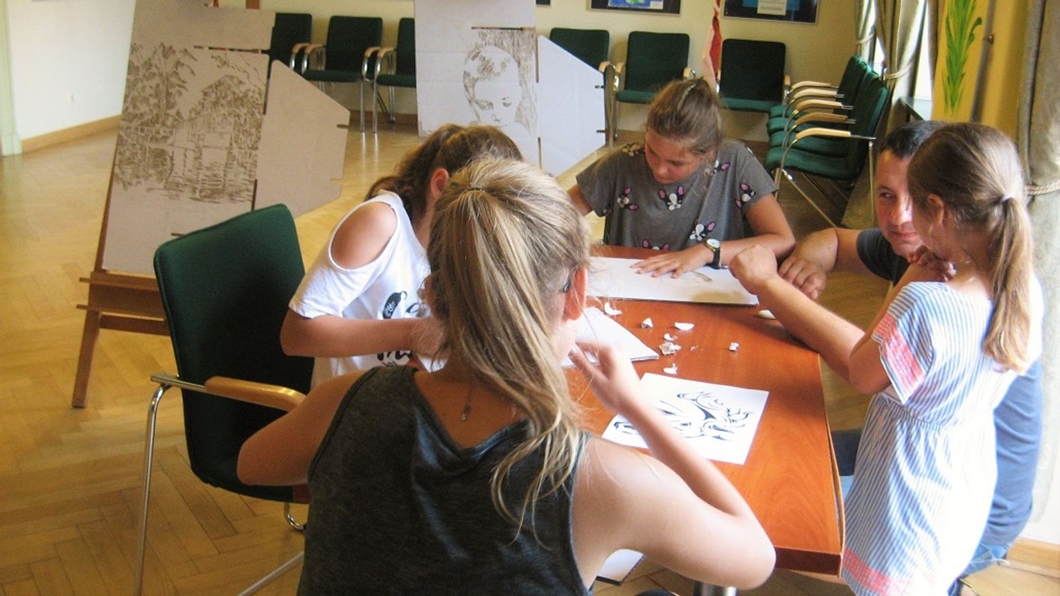 Nowatorska technika płaskorzeźby z wykorzystaniem tektury falistej Marcina Stańca, absolwenta Łódzkiej Akademii Sztuk Pięknych, obecnie pracownika Miejskiego Centrum Kultury budziła zainteresowanie nastoletniego odbiorcy spotkania. Prace powstałe z surowców wtórnych przedstawiające zwierzęta na zasadzie piktogramów cieszyły młodych artystów. Na sztalugach można było zobaczyć portrety i pejzaż wykonany przez samego prowadzącego warsztaty w tejże technice.