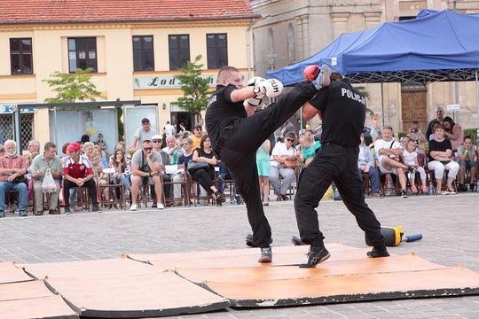 Nie lada atrakcją była grupa minersko-pirotechniczna z Łodzi, która rozminowała i zdetonowała ładunek wybuchowy. Policjanci zaprezentowali podstawowe chwyty obezwładniające. Był pokaz tresury psa policyjnego. Uroczystość uświetniła .Orkiestra Policyjna z Katowic, która wykonała kilka utworów.in. melodię z filmu „Janosik”, z „Akademii policyjnej”. Wystąpił też zespół ludowy z Ukrainy „Wołyńskie słowiki”.