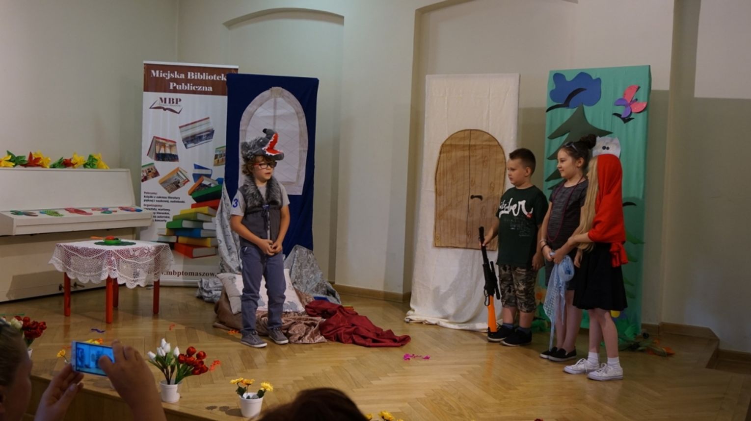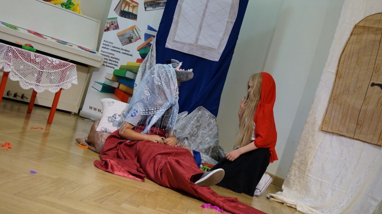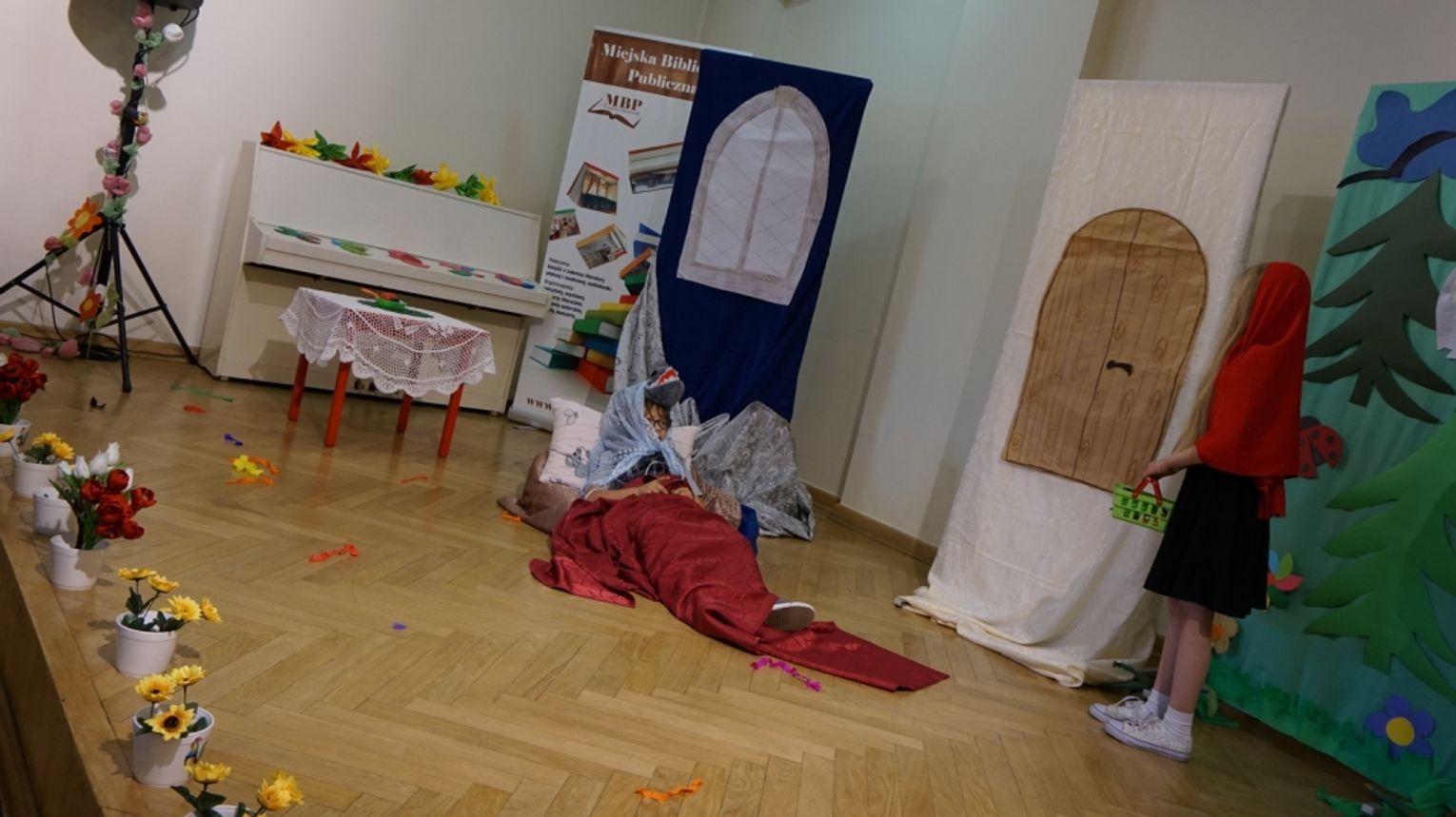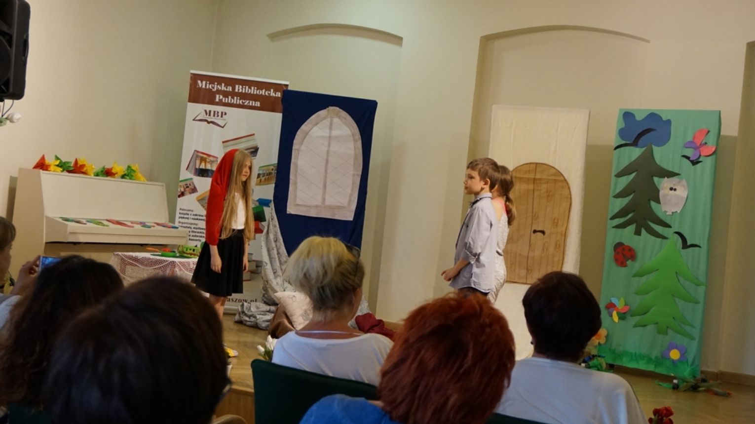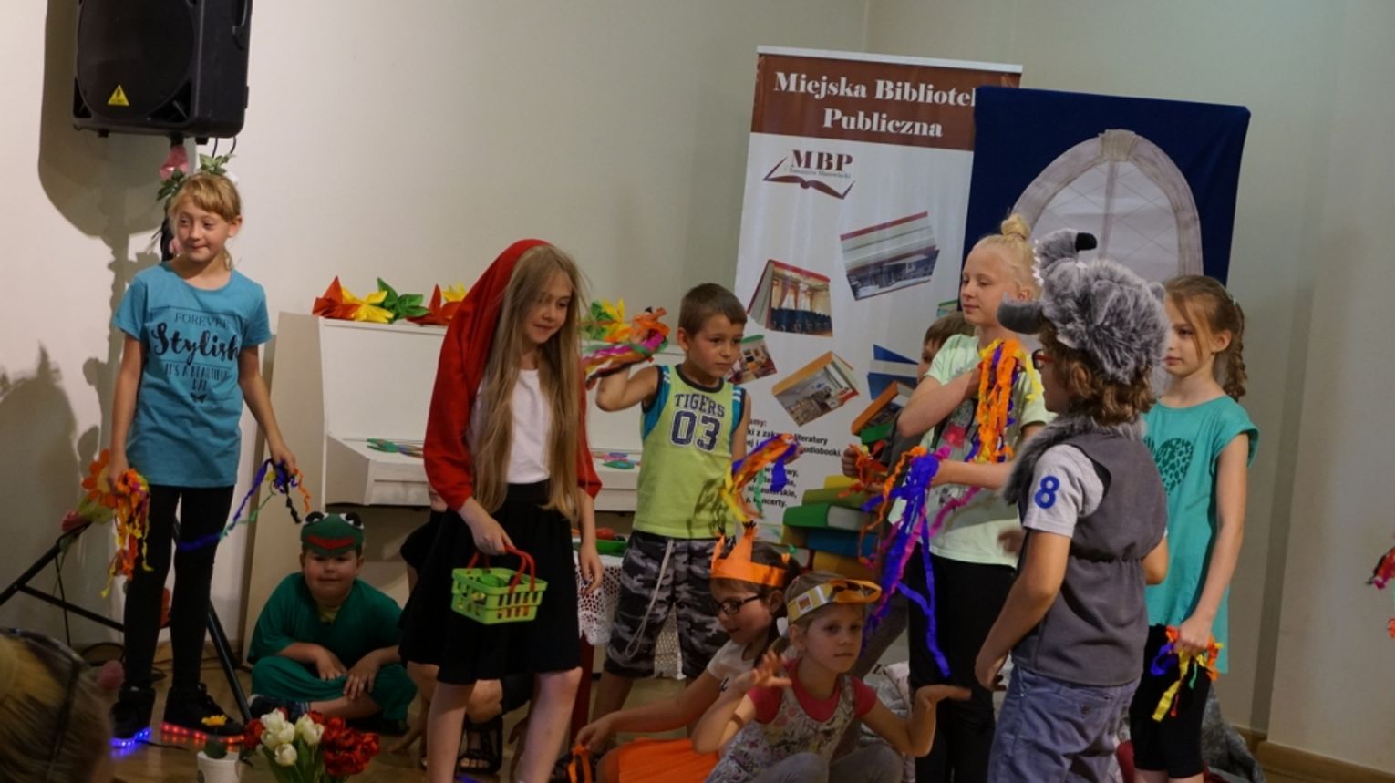 Ostatni dzień wakacji w bibliotece to „Teatr młodego aktora”. Zajęcia na temat świata teatru poprowadził Pan Janusz Dziubałtowski - twórca i założyciel „Młodzieżowego Teatru Do Spraw Ciężkich”. Nie zabrakło ćwiczeń dykcji oraz prawidłowej wymowy. Zwieńczeniem spotkania była próba generalna przedstawienia pt. „Czerwony Kapturek”. Ukoronowaniem wakacji w bibliotece było wystawienie spektaklu o powyższym tytule przez dzieci dla ich rodziców i dziadków.