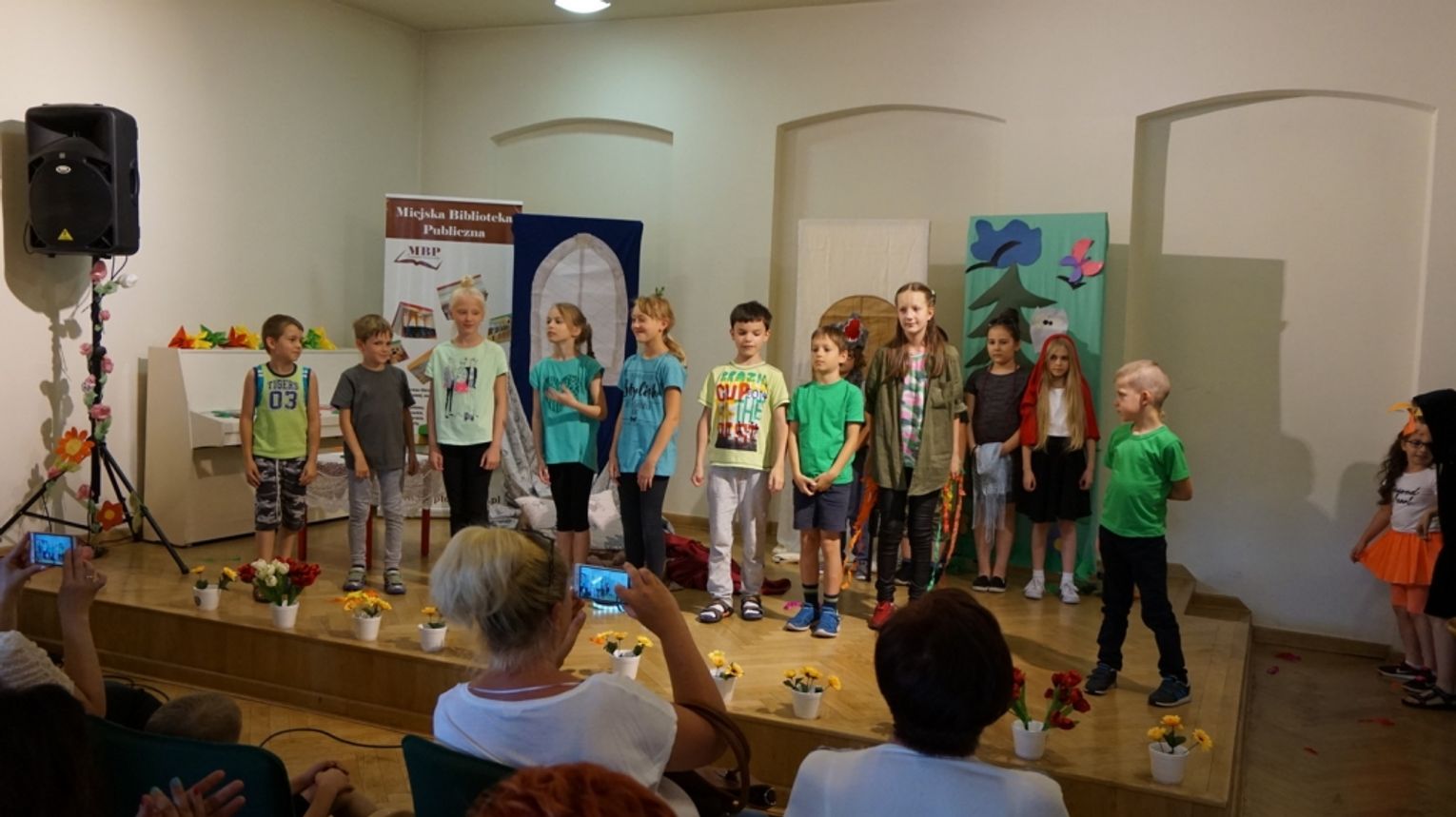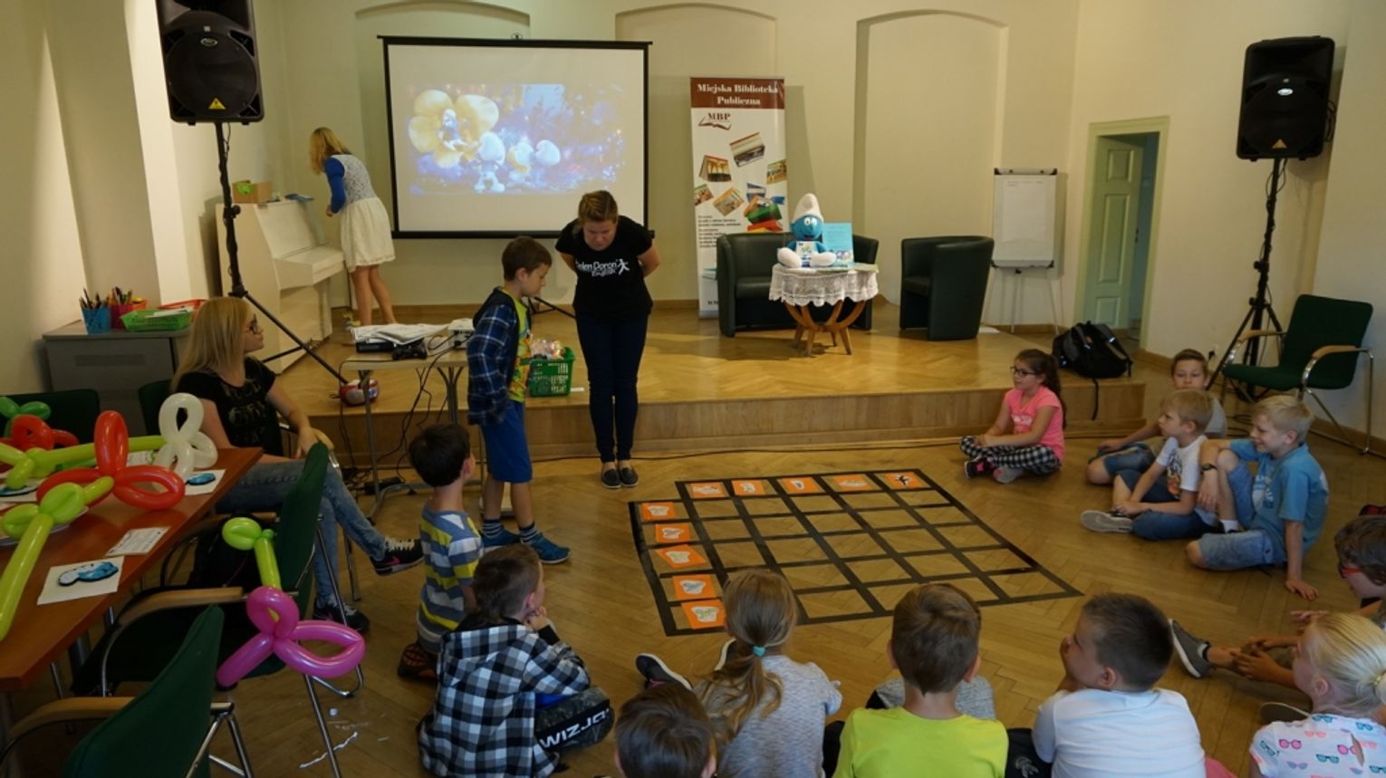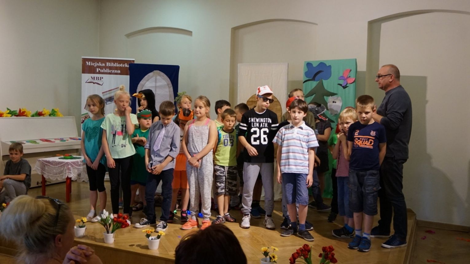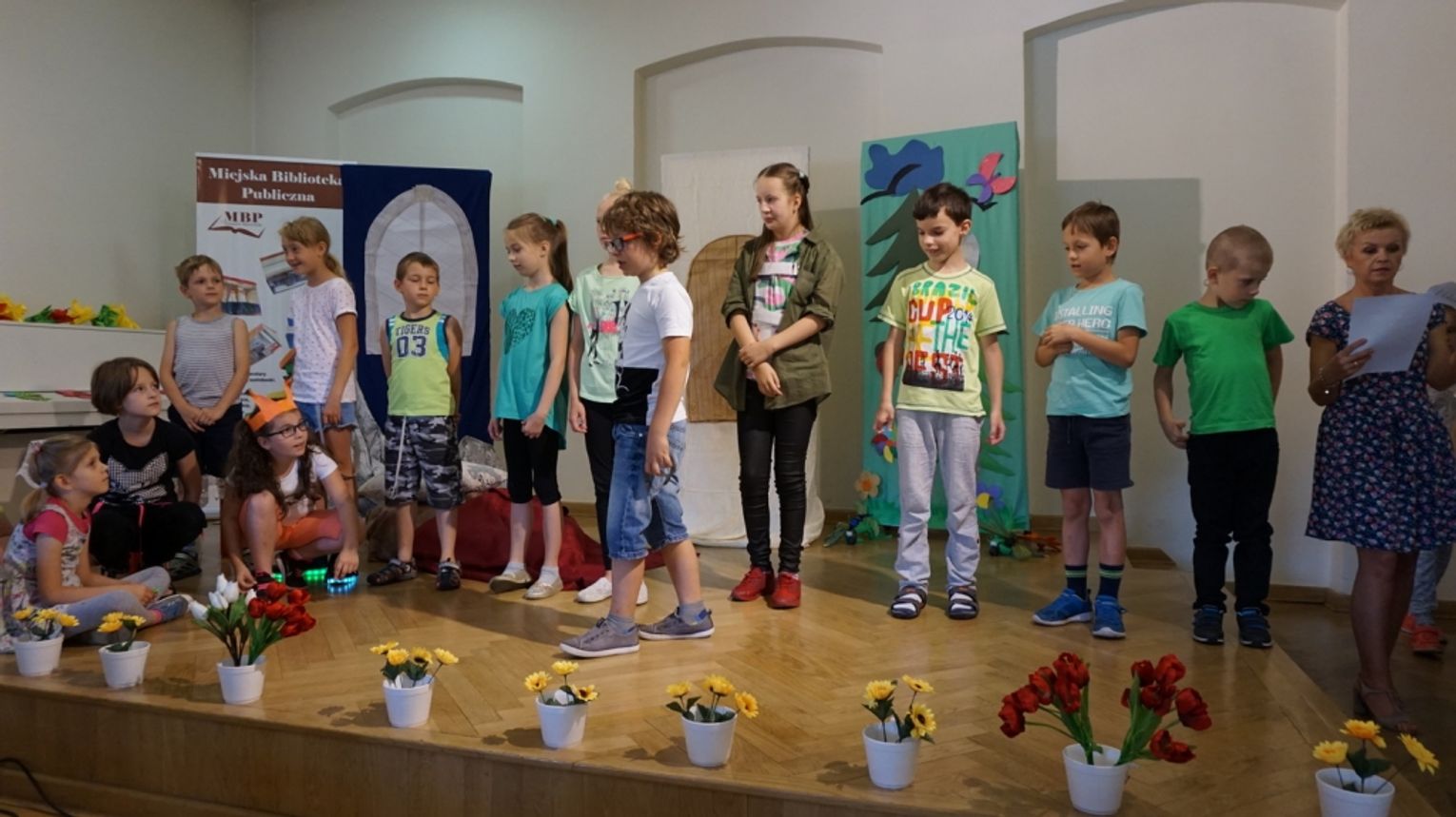 Ostatni dzień wakacji w bibliotece to „Teatr młodego aktora”. Zajęcia na temat świata teatru poprowadził Pan Janusz Dziubałtowski - twórca i założyciel „Młodzieżowego Teatru Do Spraw Ciężkich”. Nie zabrakło ćwiczeń dykcji oraz prawidłowej wymowy. Zwieńczeniem spotkania była próba generalna przedstawienia pt. „Czerwony Kapturek”. Ukoronowaniem wakacji w bibliotece było wystawienie spektaklu o powyższym tytule przez dzieci dla ich rodziców i dziadków.