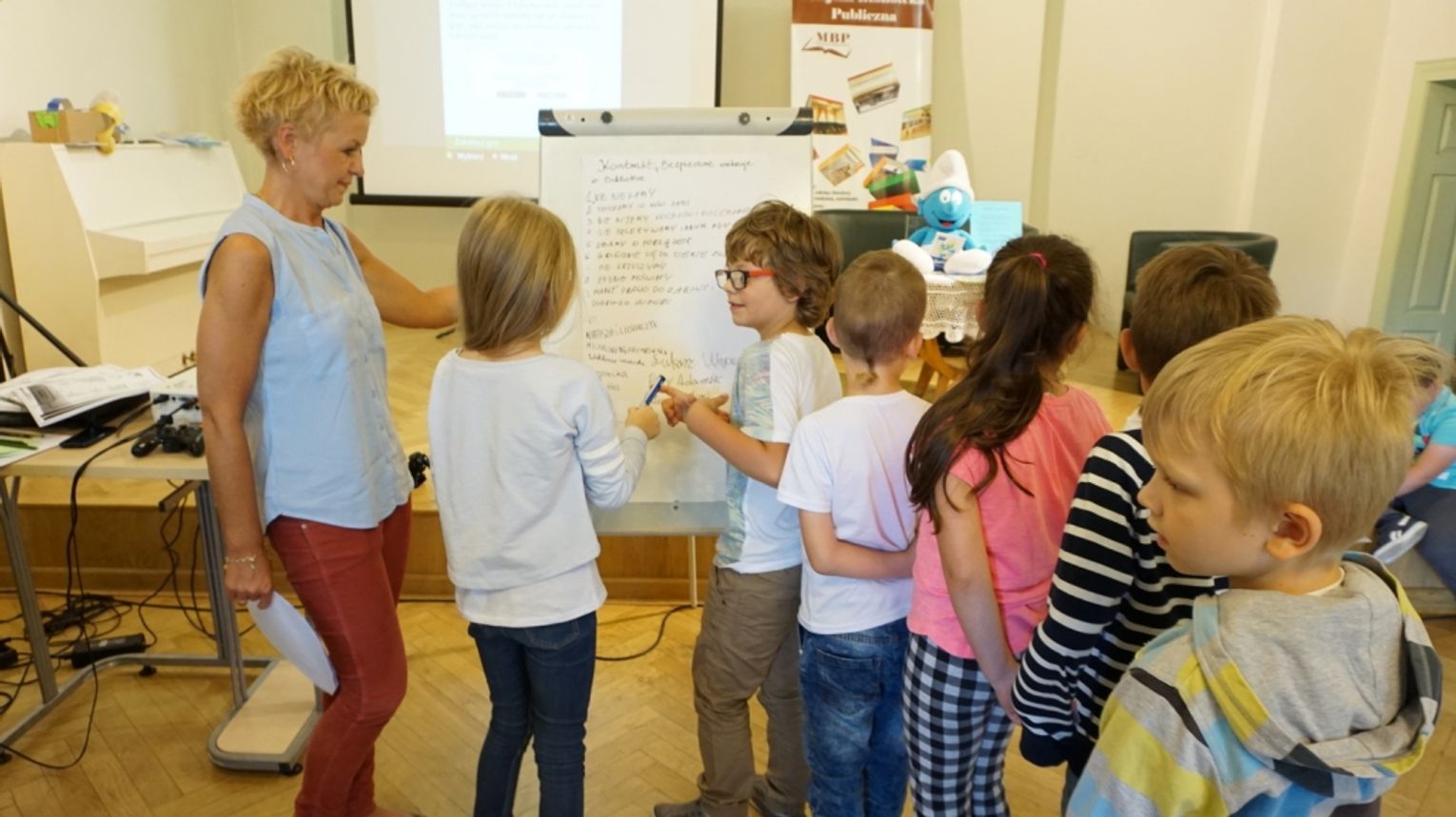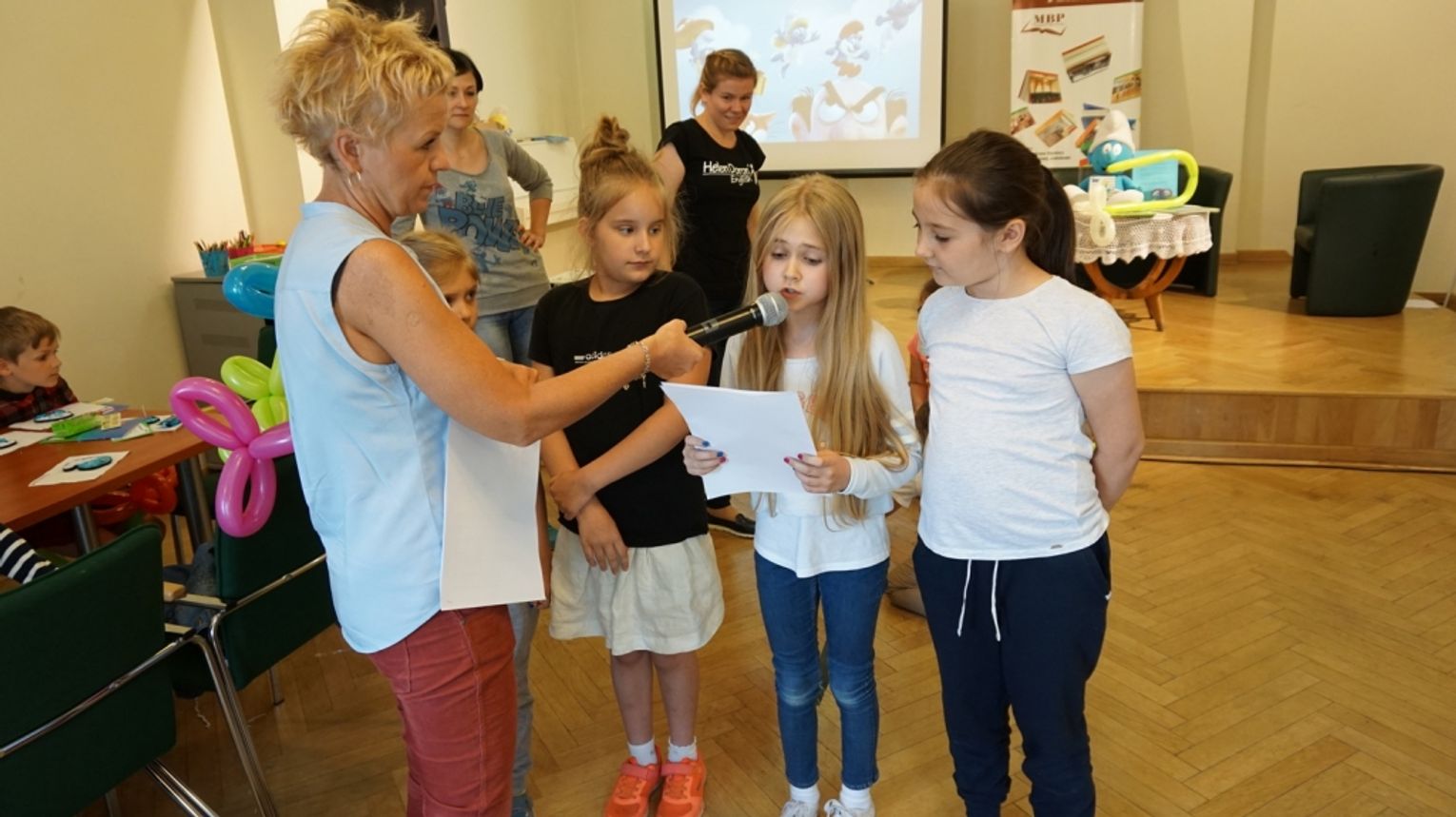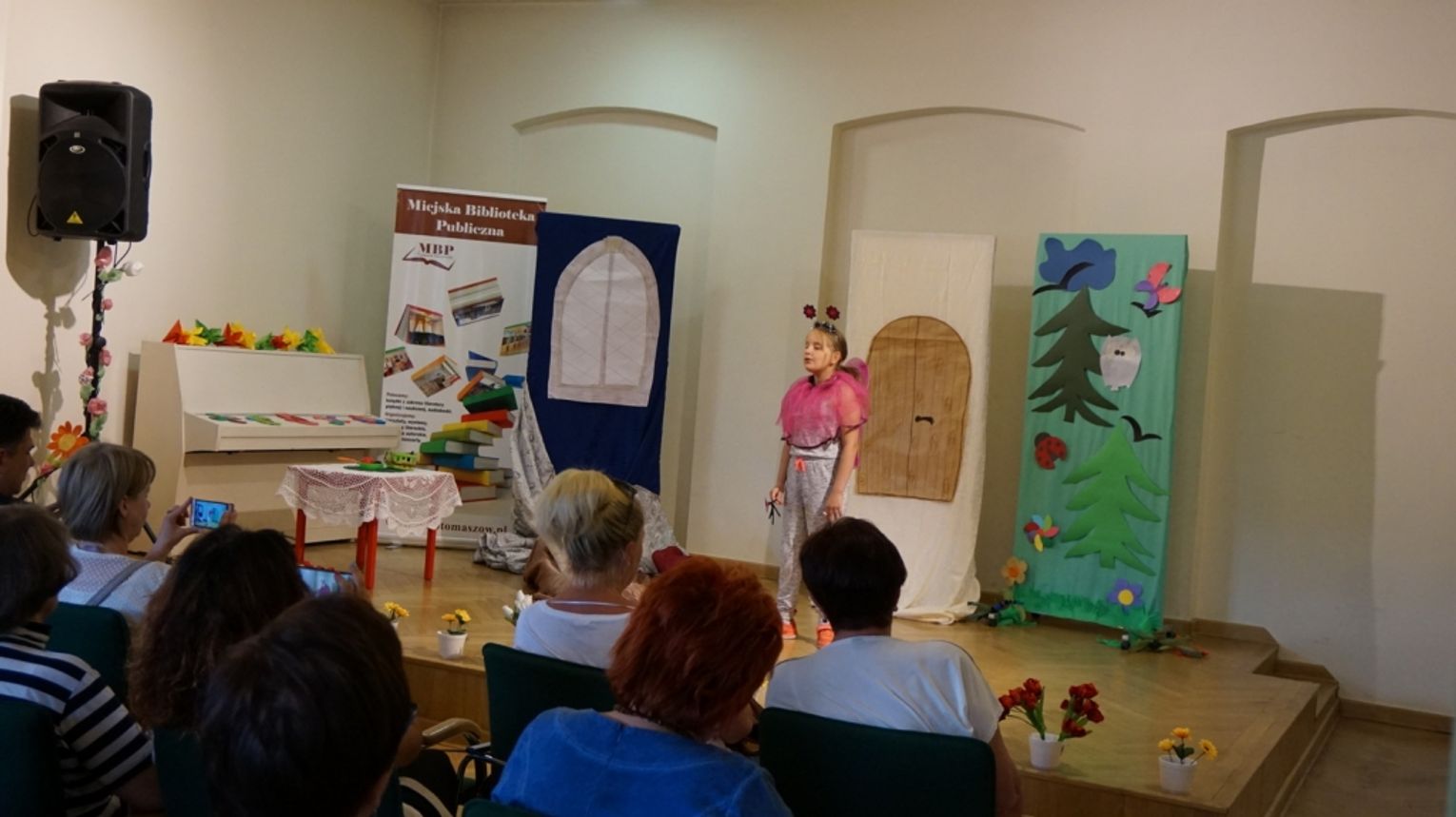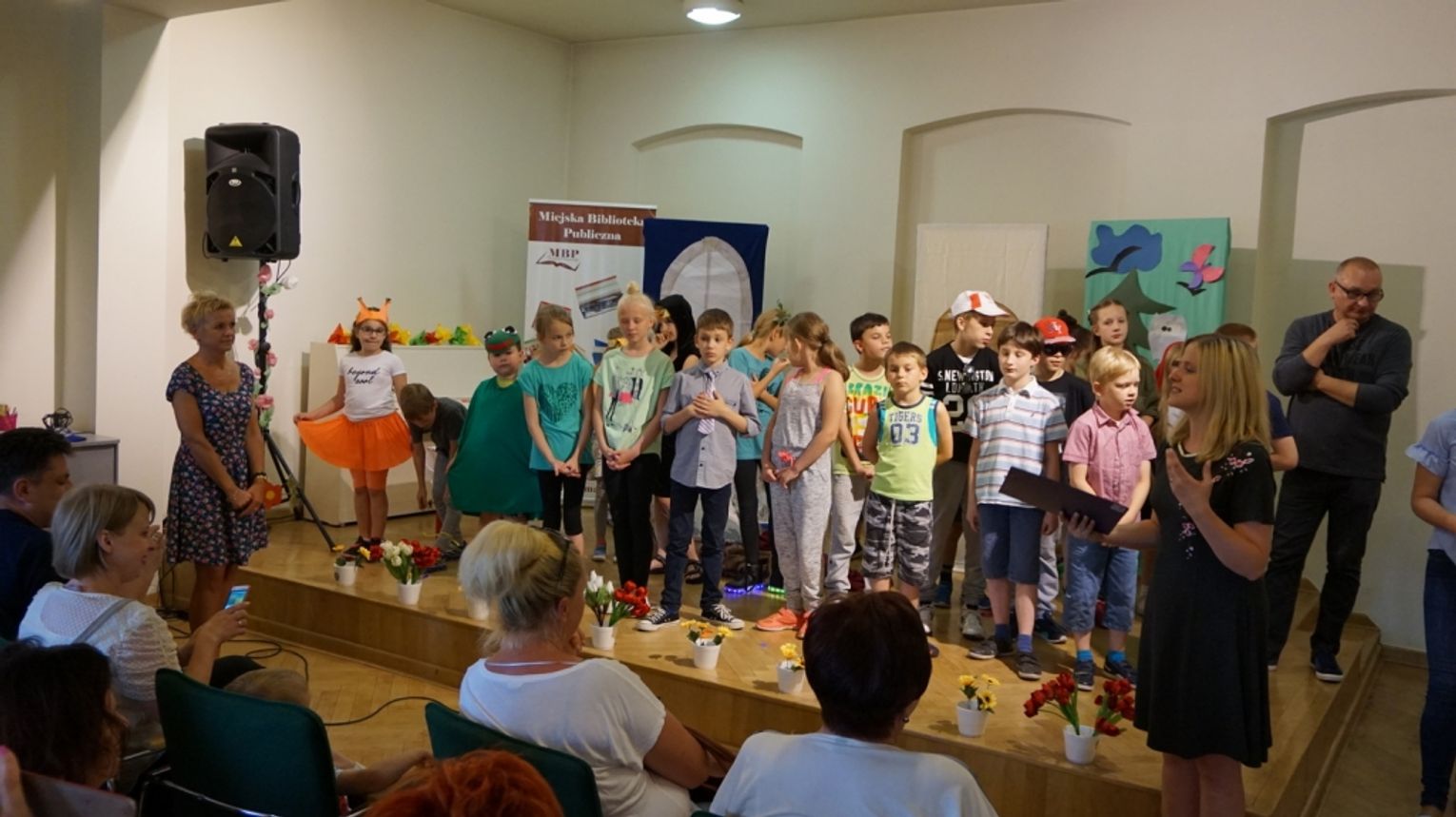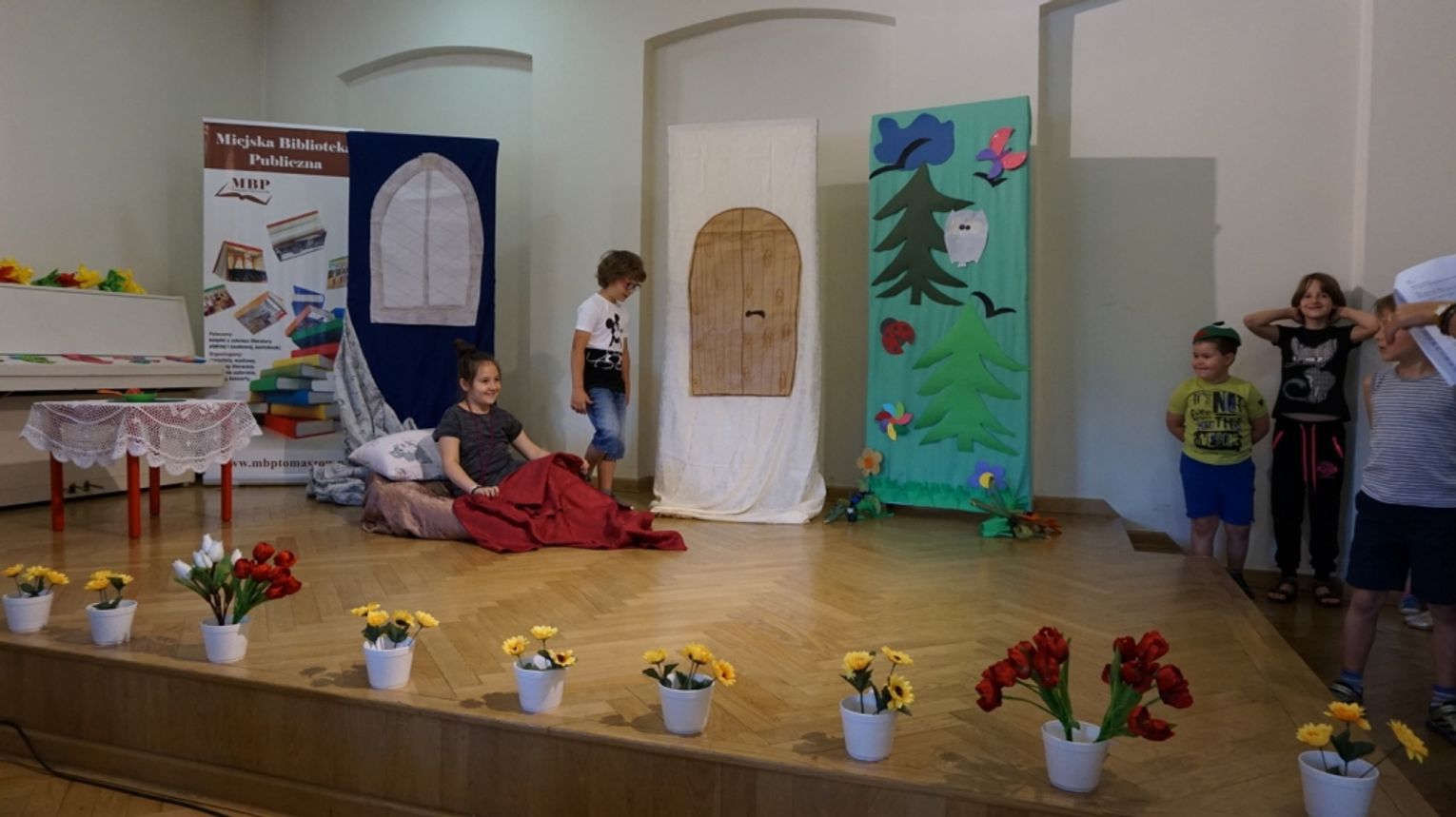 Ostatni dzień wakacji w bibliotece to „Teatr młodego aktora”. Zajęcia na temat świata teatru poprowadził Pan Janusz Dziubałtowski - twórca i założyciel „Młodzieżowego Teatru Do Spraw Ciężkich”. Nie zabrakło ćwiczeń dykcji oraz prawidłowej wymowy. Zwieńczeniem spotkania była próba generalna przedstawienia pt. „Czerwony Kapturek”. Ukoronowaniem wakacji w bibliotece było wystawienie spektaklu o powyższym tytule przez dzieci dla ich rodziców i dziadków.