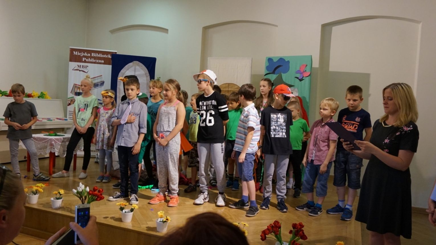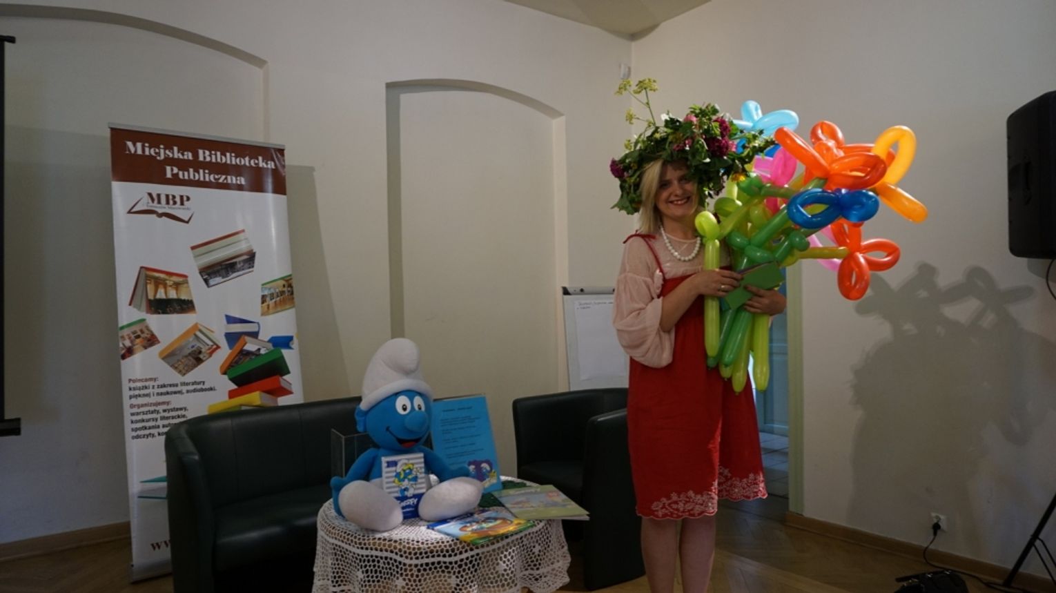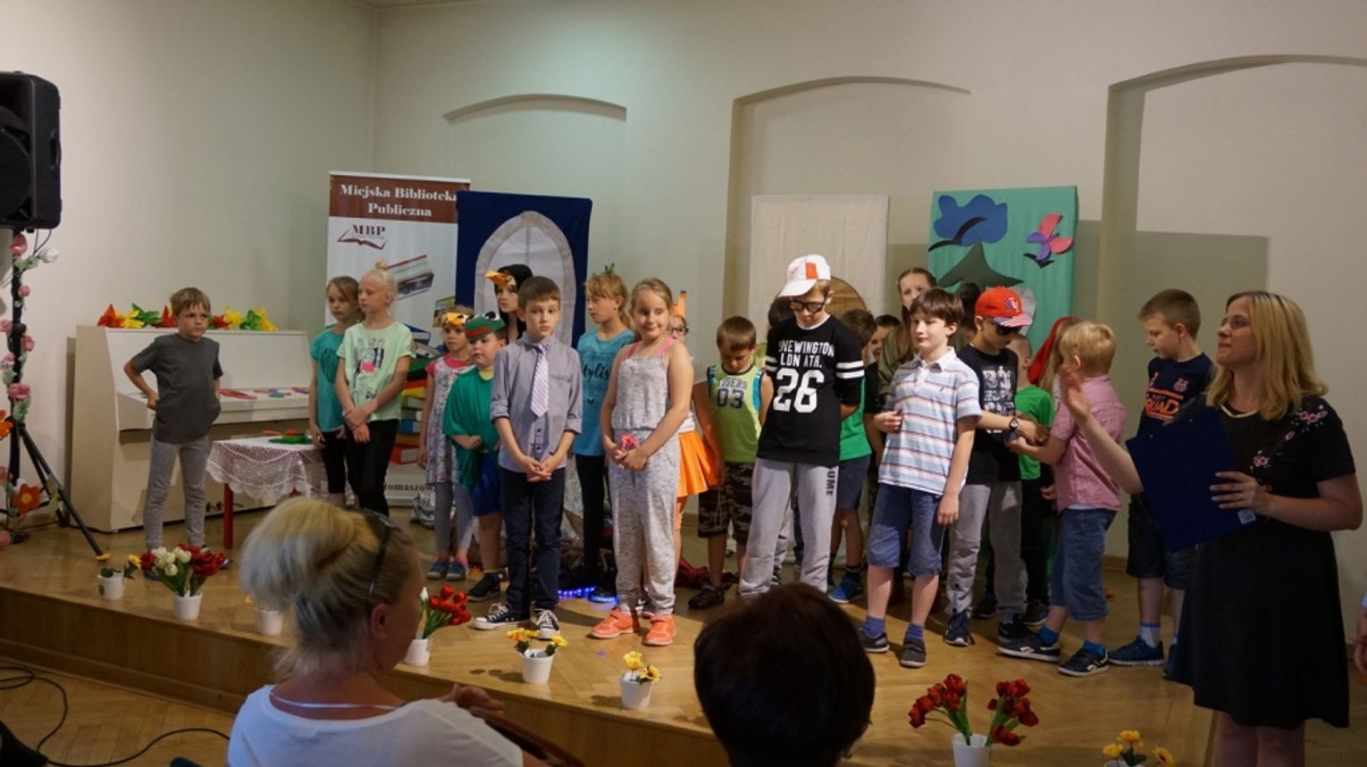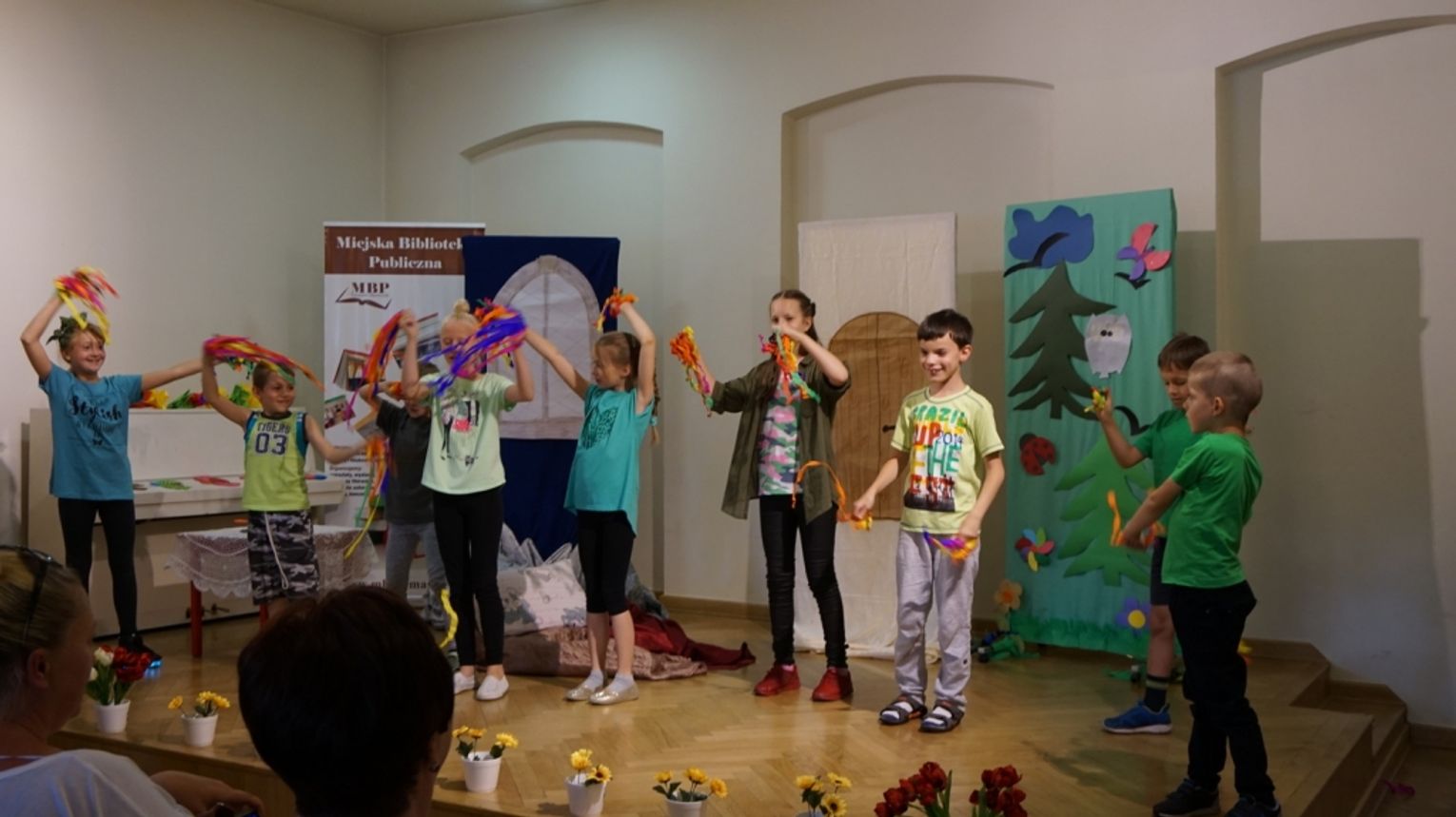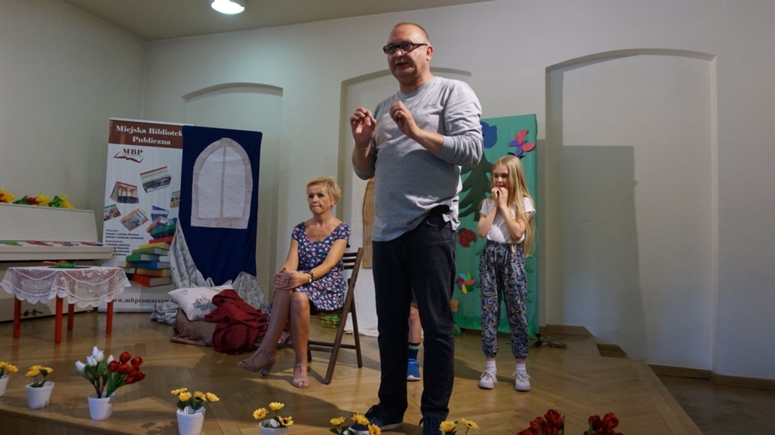 Ostatni dzień wakacji w bibliotece to „Teatr młodego aktora”. Zajęcia na temat świata teatru poprowadził Pan Janusz Dziubałtowski - twórca i założyciel „Młodzieżowego Teatru Do Spraw Ciężkich”. Nie zabrakło ćwiczeń dykcji oraz prawidłowej wymowy. Zwieńczeniem spotkania była próba generalna przedstawienia pt. „Czerwony Kapturek”. Ukoronowaniem wakacji w bibliotece było wystawienie spektaklu o powyższym tytule przez dzieci dla ich rodziców i dziadków.