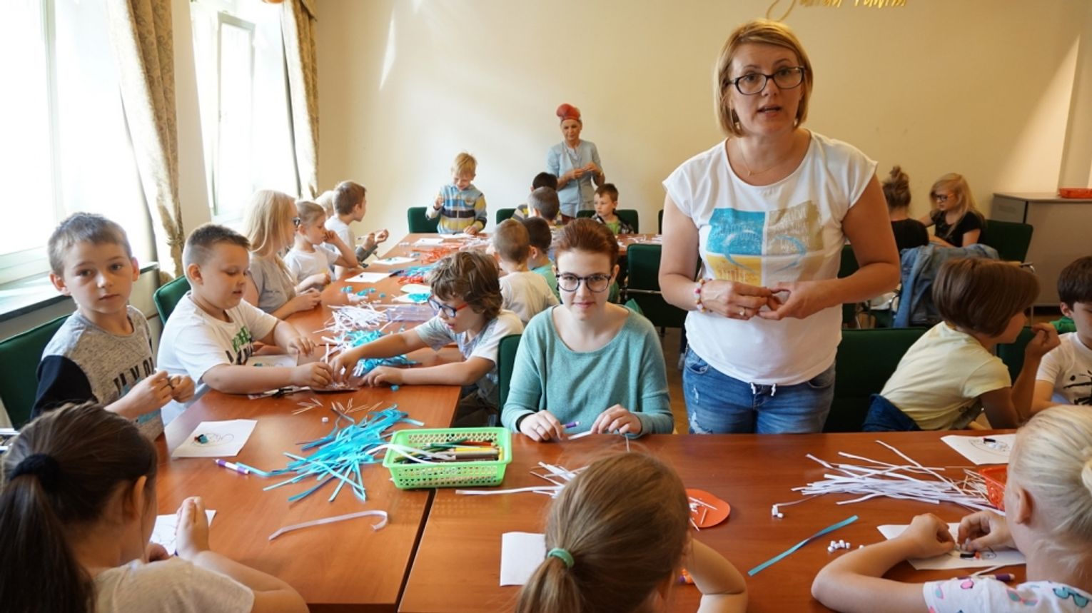 Uczestnicy letnich warsztatów w bibliotece otrzymywali poczęstunek ufundowany przez Urząd Miasta w Tomaszowie Mazowieckim.