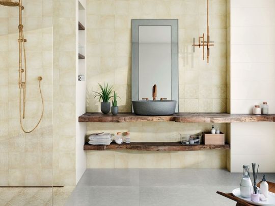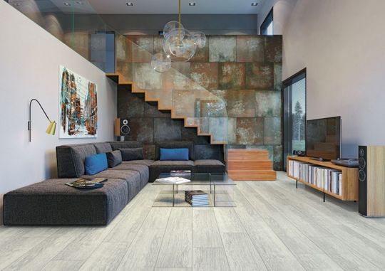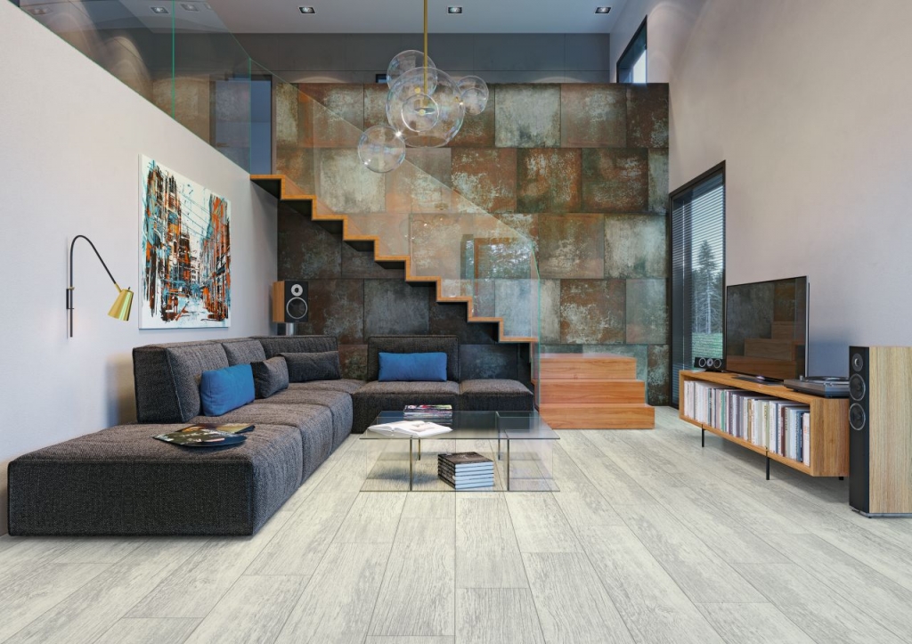 Kolekcja spodoba się zwolennikom nowoczesnego designu, szczególnie w jego aktualnym, industrialnym wydaniu. Płytki w formatach 59,8x59,8 cm i 7,2x59,8 cm pokryte są matowym szkliwem z zastosowaniem odpowiedniej protekcji. Powierzchnię brązowych kafli zdobią rdzawe, pobłyskujące akcenty, wywołujące ciekawe efekty wizualne. Dynamiczny, tonalny wzór inspirowany jest procesem korodowania blachy, dlatego industrialna płytka idealnie współgra ze strukturą fabrycznej cegły, choć ciekawie komponuje się również z ciemnym drewnem, gresem, a na zasadzie kontrastu – także z gładką powierzchnią białej ściany. Minimalistyczne meble i autorskie dodatki podkreślą nietuzinkowy charakter tej odważnej kolekcji.