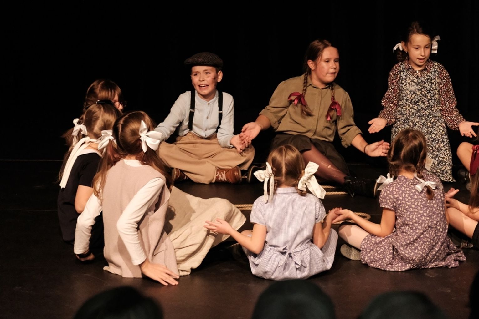 Spektakl podjął tematykę trudną – Holokaustu widzianego oczami dzieci, którym przyszło żyć w czasie II wojny światowej. Młodzi aktorzy pokazali strach przed nalotami i bombami spadającymi na ich domy, głód i ubóstwo, choroby, utratę bliskich będące tłem do prób życia w świecie dziecięcej codzienności – chęci zabawy, nauki, uśmiechu i beztroski. Widowisko dodatkowo wzbogacono materiałami dokumentalnymi, zdjęciami i filmowymi relacjami osób, które były dziećmi w chwili wybuchu wojny.