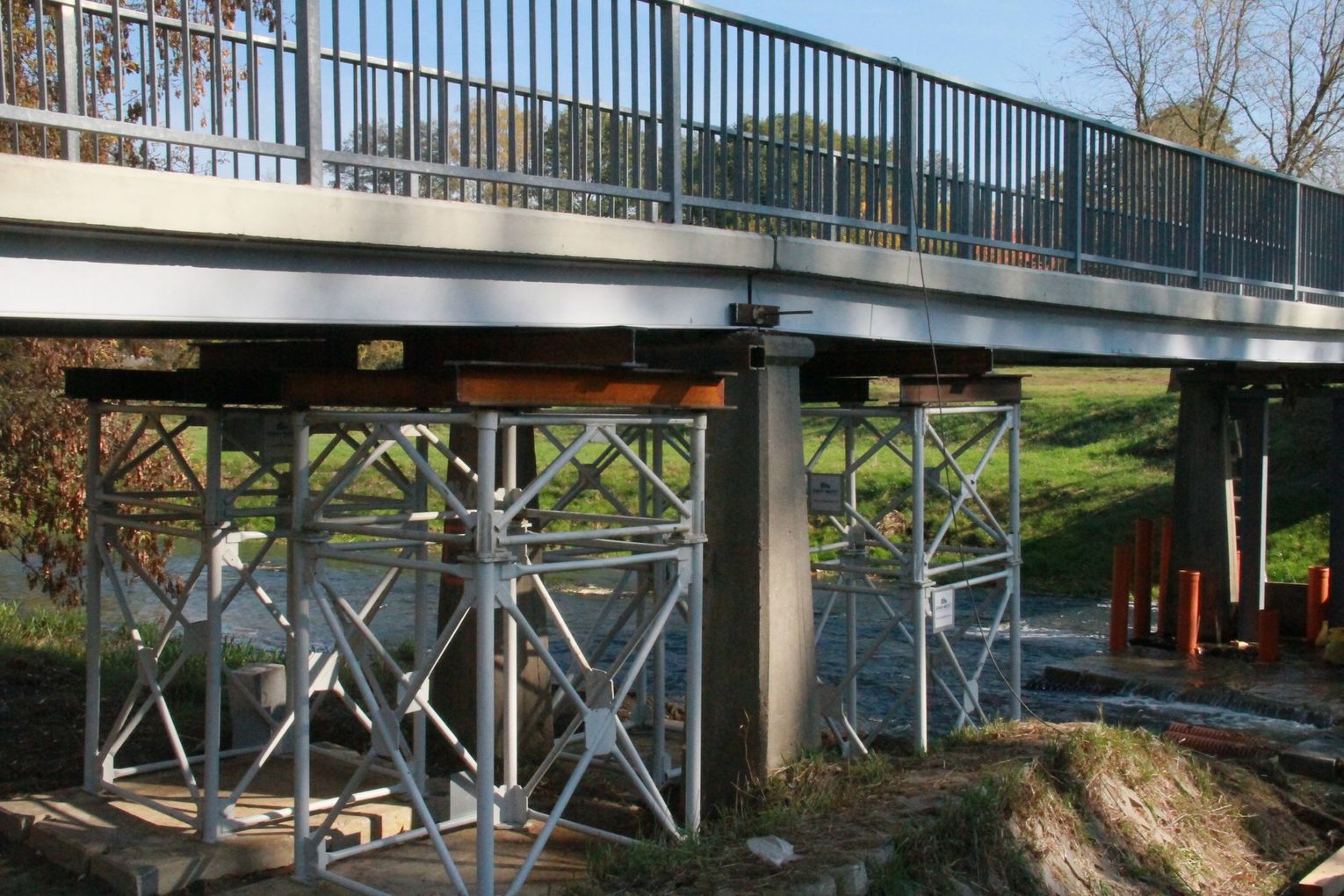 W ramach przebudowy wykonane zostanie wzmocnienie posadowienia podpory nurtowej poprzez wykonanie dodatkowych mikropali, monolityczne zespolenie nowych pali ze starym fundamentem oraz tymczasowe podparcie przęseł i odciążenie istniejących podpór. Ponadto wykonawca rozbierze słupy podpory, zbuduje nowe korpusy i słupy stalowe, a także przeprowadzi roboty budowlane przy pozostałych podporach.