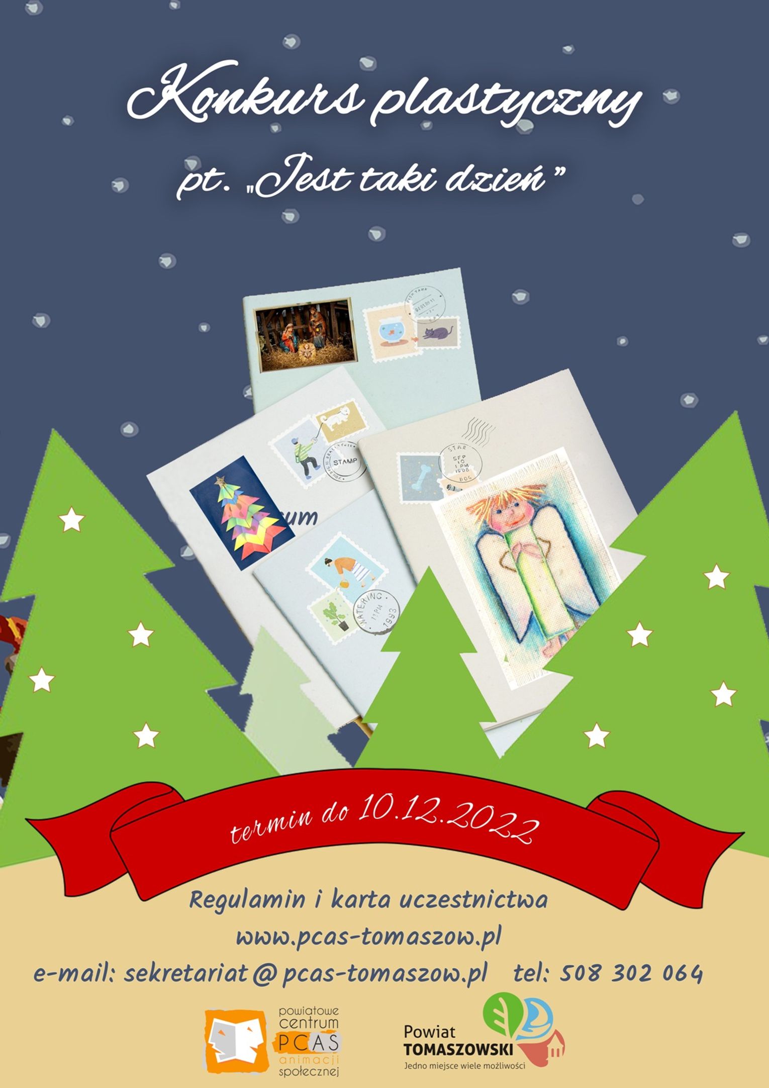 Jest on adresowany do przedszkolaków, uczniów szkół podstawowych i ponadpodstawowych, a zadaniem uczestników jest przygotowanie kartki świątecznej w formacie A6, w technice płaskiej, tak, by zmieściła się do standardowej koperty. Kartki trafią do instytucji społecznych - domów pomocy, domów dziecka, osób samotnych, by umilić im wyjątkowy, świąteczny czas, a także do instytucji i podmiotów, które wspierają działania placówki. Prace należy dostarczyć do 10 grudnia do sekretariatu placówki, budynek E, ul. Farbiarska20/24 wraz z kartą zgłoszeniową. Na zwycięzców czekają super nagrody. Regulamin i karta zgłoszenia dostępne są na stronie internetowej PCAS-u www.pcastm.pl.