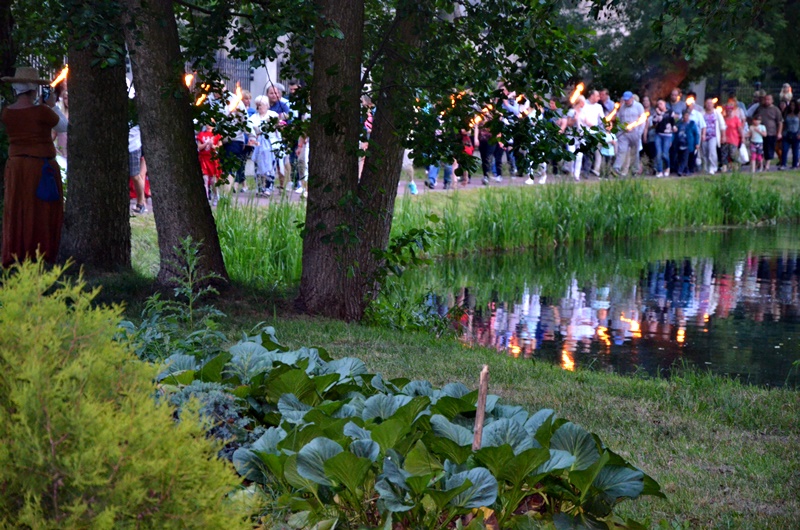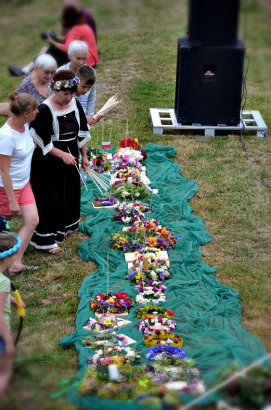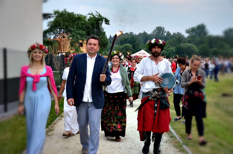 Pod koniec dnia (po zmroku) nastąpił przemarsz orszaku spod zamku nad rzekę przy akompaniamencie bębnów i w świetle pochodni. Tam wianki puszczano na Pilicę, któremu towarzyszył śpiew grupy Vinochok. Następnie Zespół Muzyczny Quattro zaprosił do wspólnej zabawy.